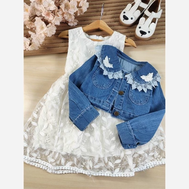 کت جین و سارافون دانتل دخترانه ارسال رایگان