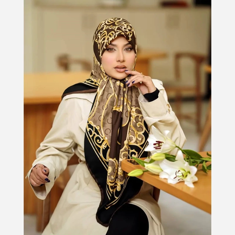 روسری ابریشم توییل مجلسی با طرح و رنگ جذاب لاکچری