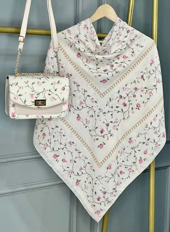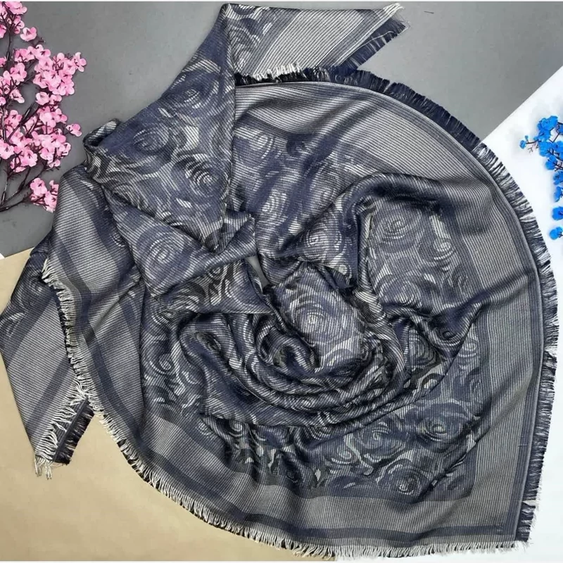 روسری نخ ابریشم ژاکارد سلین ریز لمه دار دورو