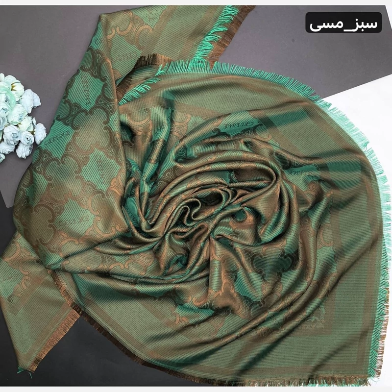روسری نخ ابریشم ژاکارد سلین درشت لمه دار دورو CELINE