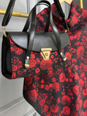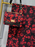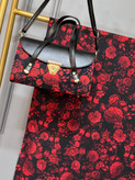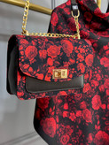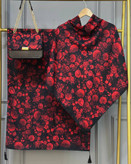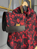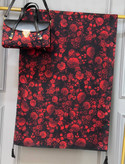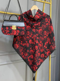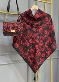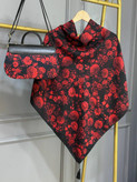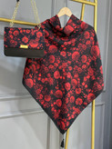 ست کیف و روسری یا شال نخ اسپان مدل گل قرمز سنتی / ارسال رایگان