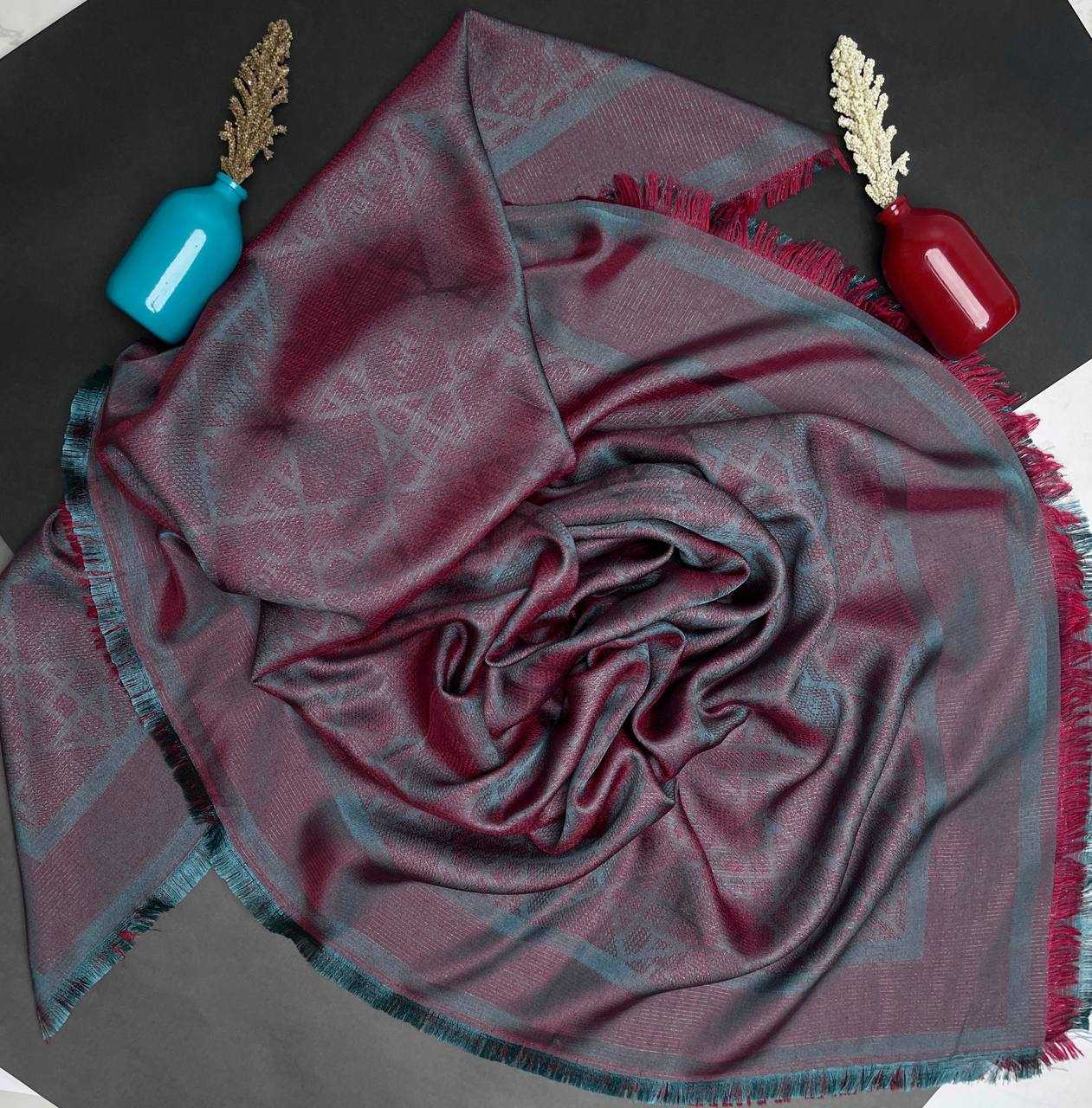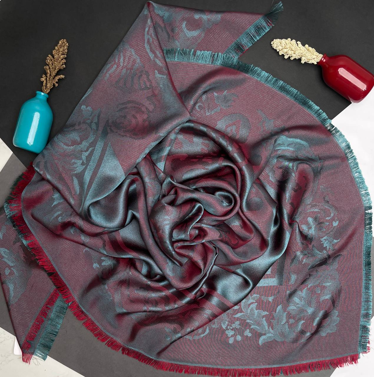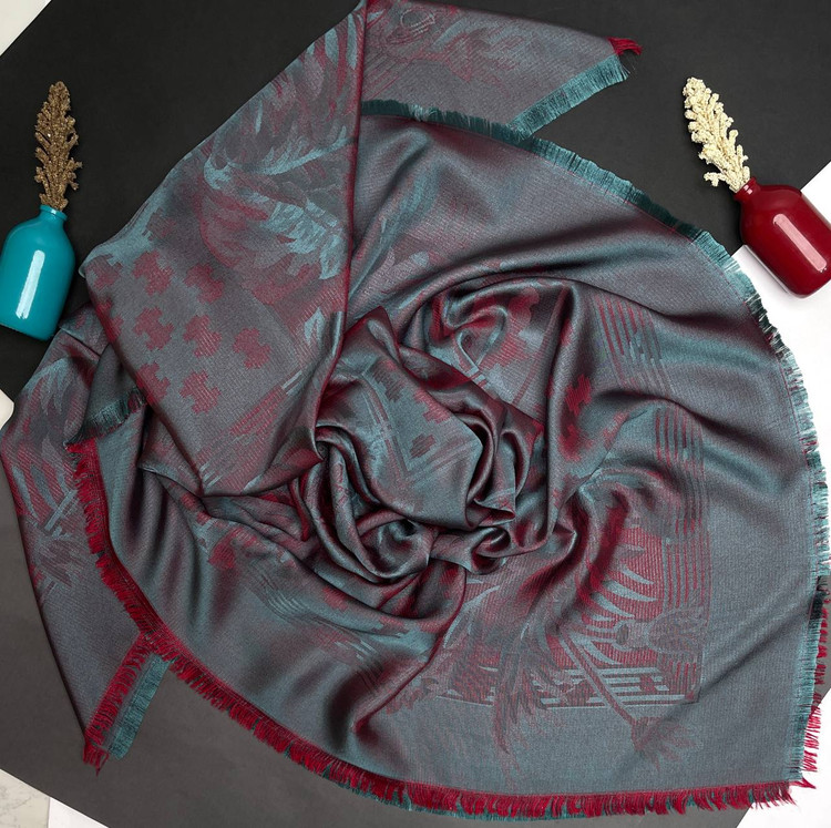 روسری نخ ابریشم ژاکارد لمهدار | محیا گالری