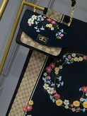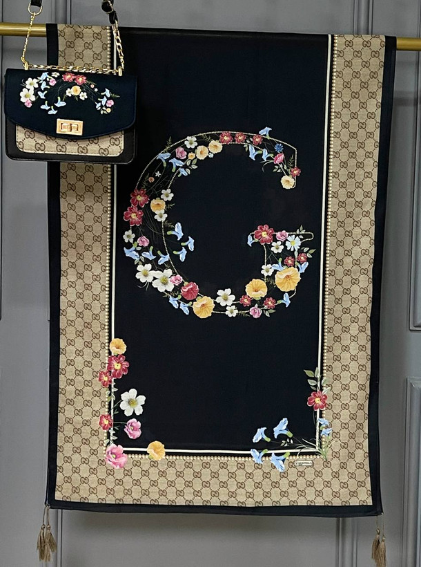 ست گوچی گلی کیف، روسری و شال نخ اسپان با کیف مخمل و چرم صنعتی