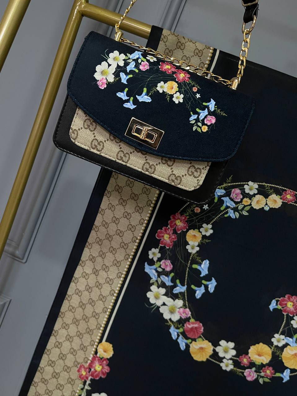 🌸 ست گوچی گلی | ست کیف، روسری و شال 🌸