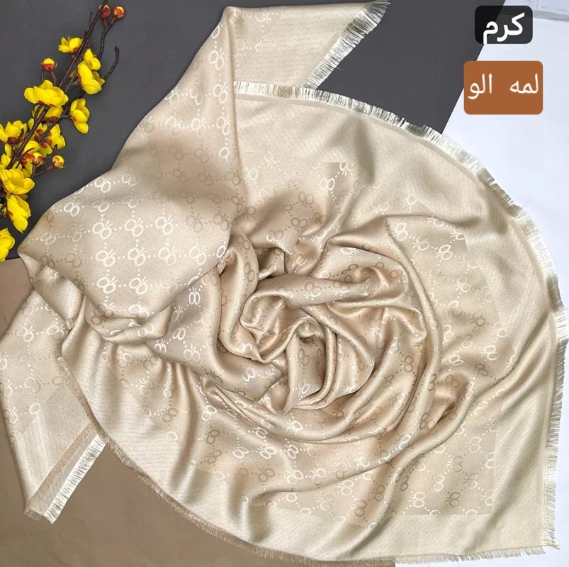 روسری نخ ابریشم ژاکارد لمه ۱۴۰ سانتی متر طرح و رنگ متنوع دور ریشهای