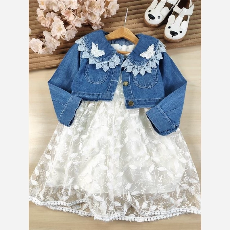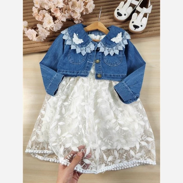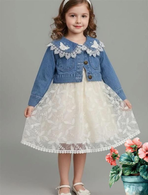 کت جین و سارافون دانتل دخترانه ارسال رایگان