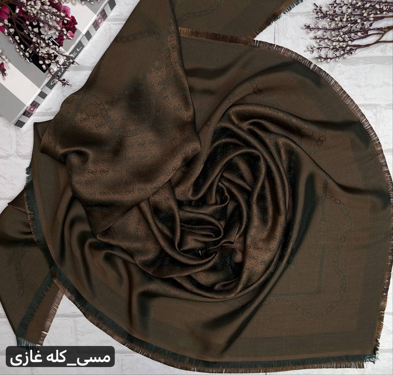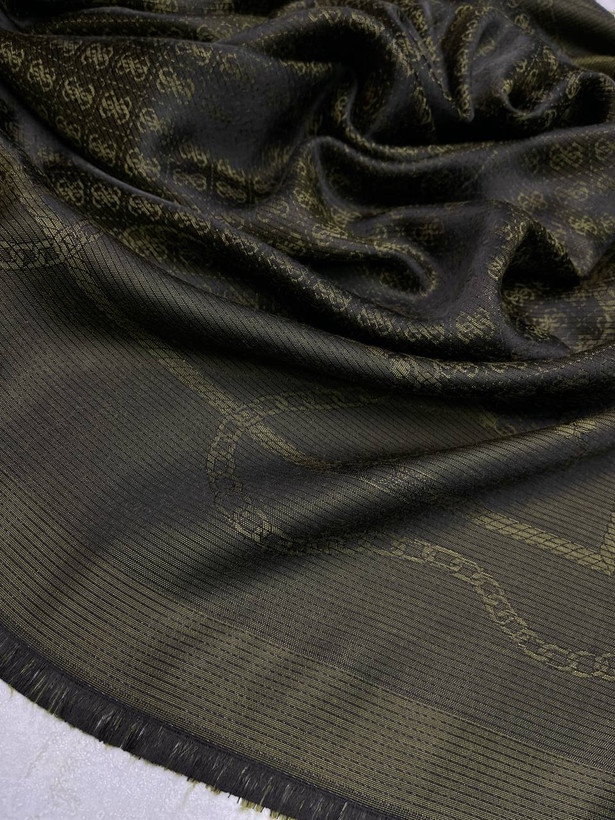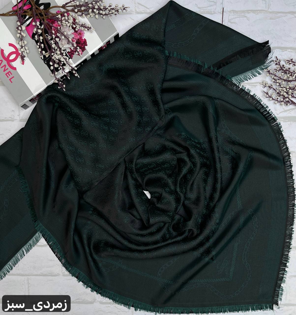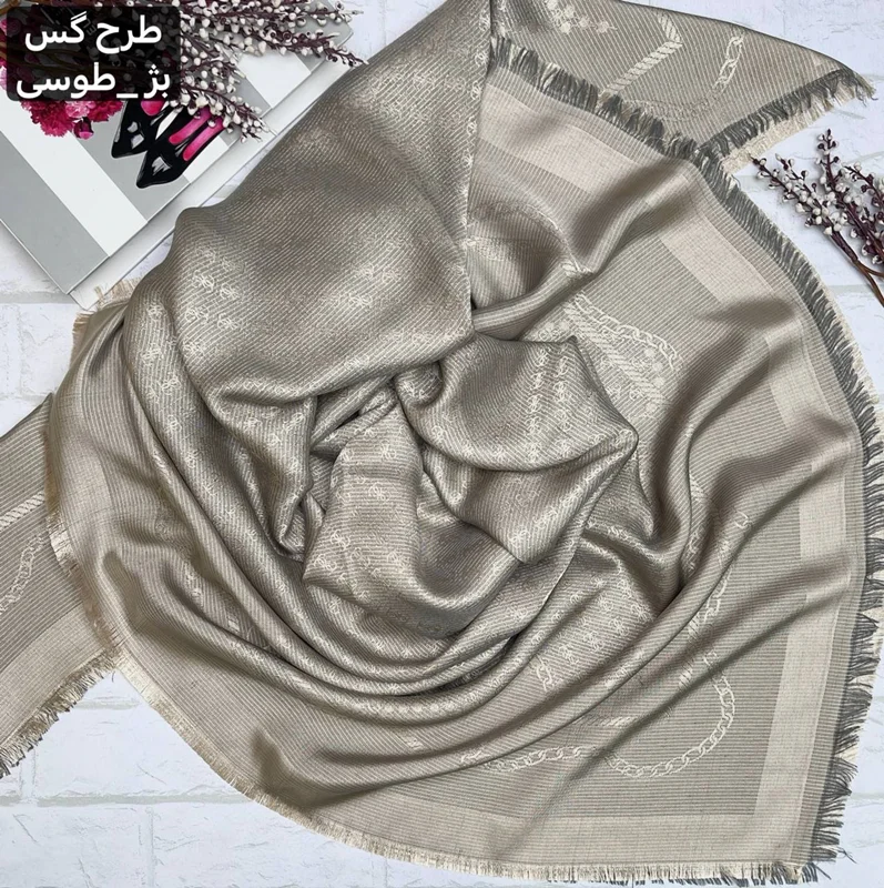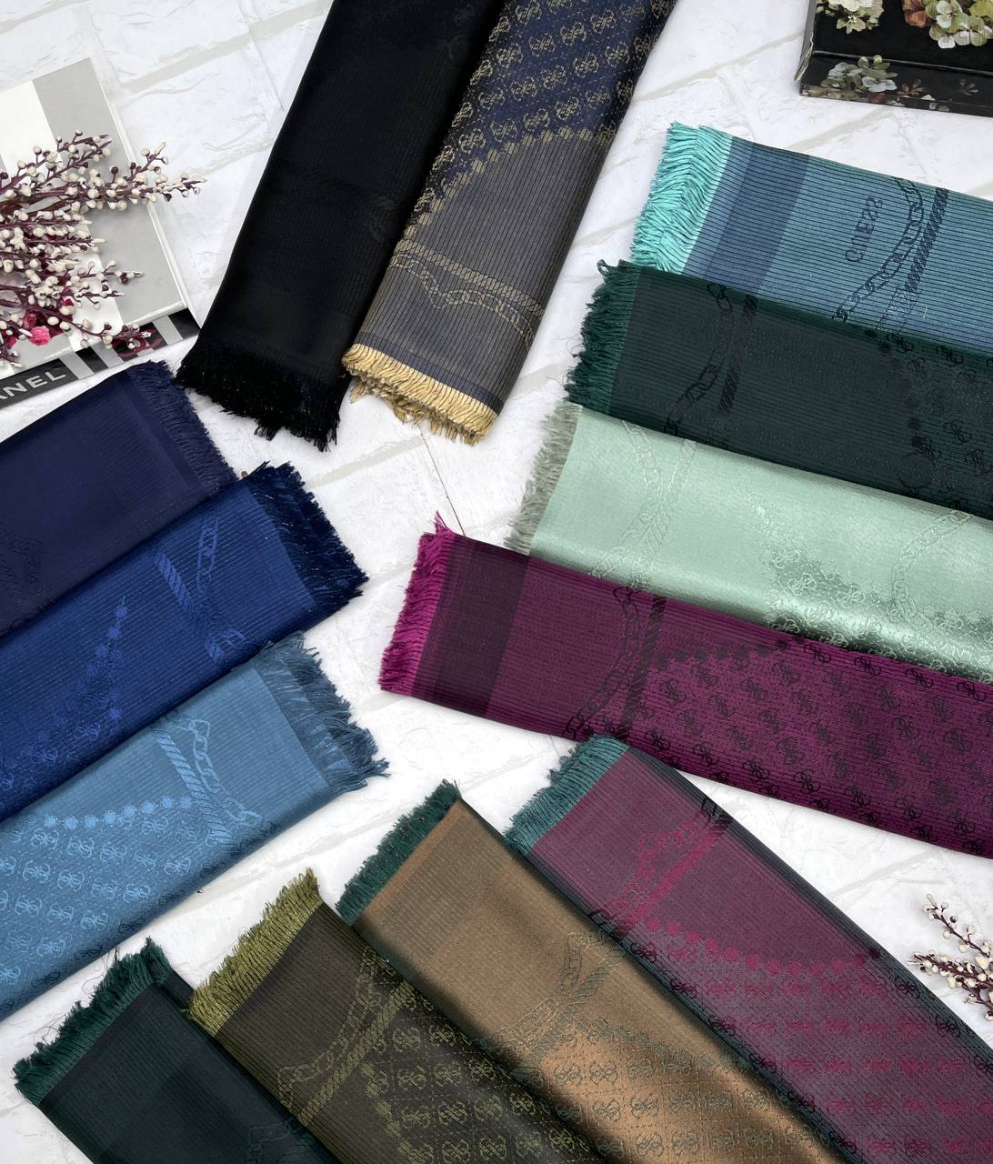 روسری نخ ابریشم ژاکارد لمهدار دورو با طرح روبرتو کاوالی زنجیردار، قواره ۱۴۰ سانتیمتر، دور ریشه و در ۱۳ رنگ متنوع. مناسب استایل مجلسی و شیک.