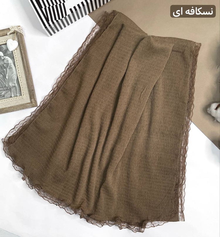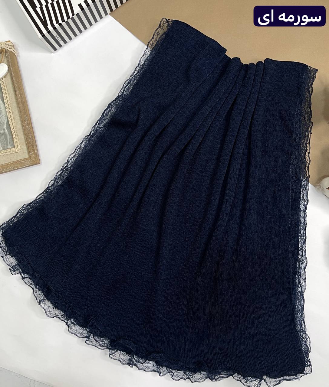 خرید شال نخ پنبه پلیسه دور دانتل ۶۰×۱۹۵ ۴رنگ محیاگالری ارسال رایگان