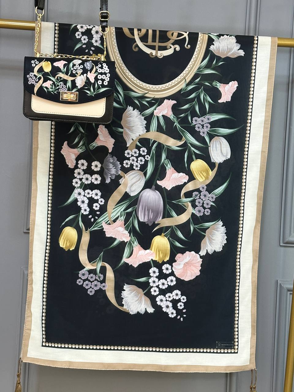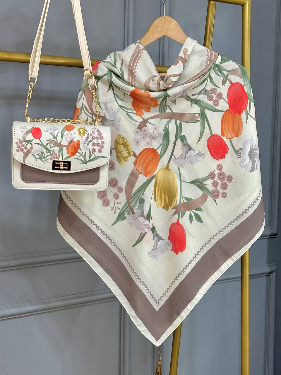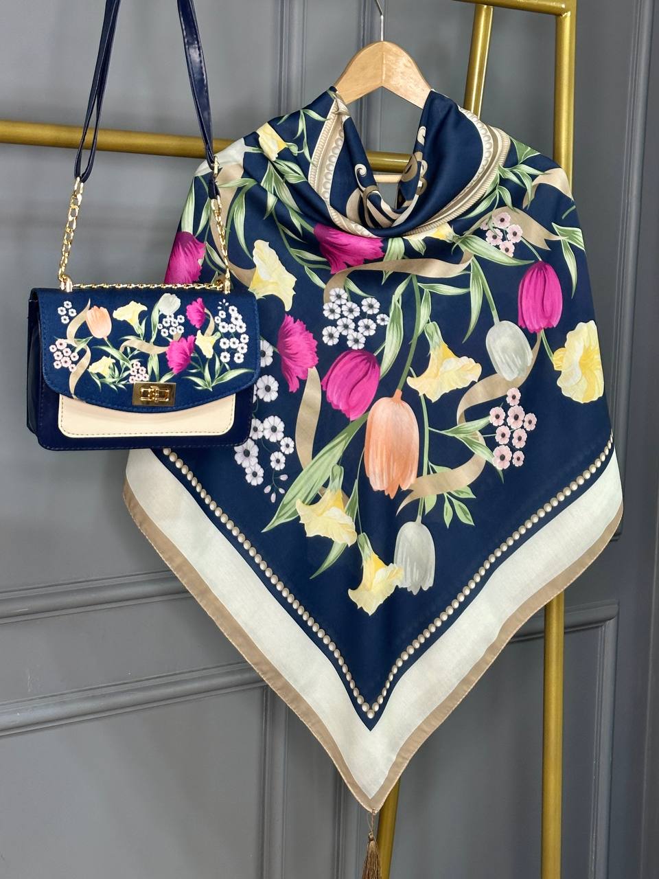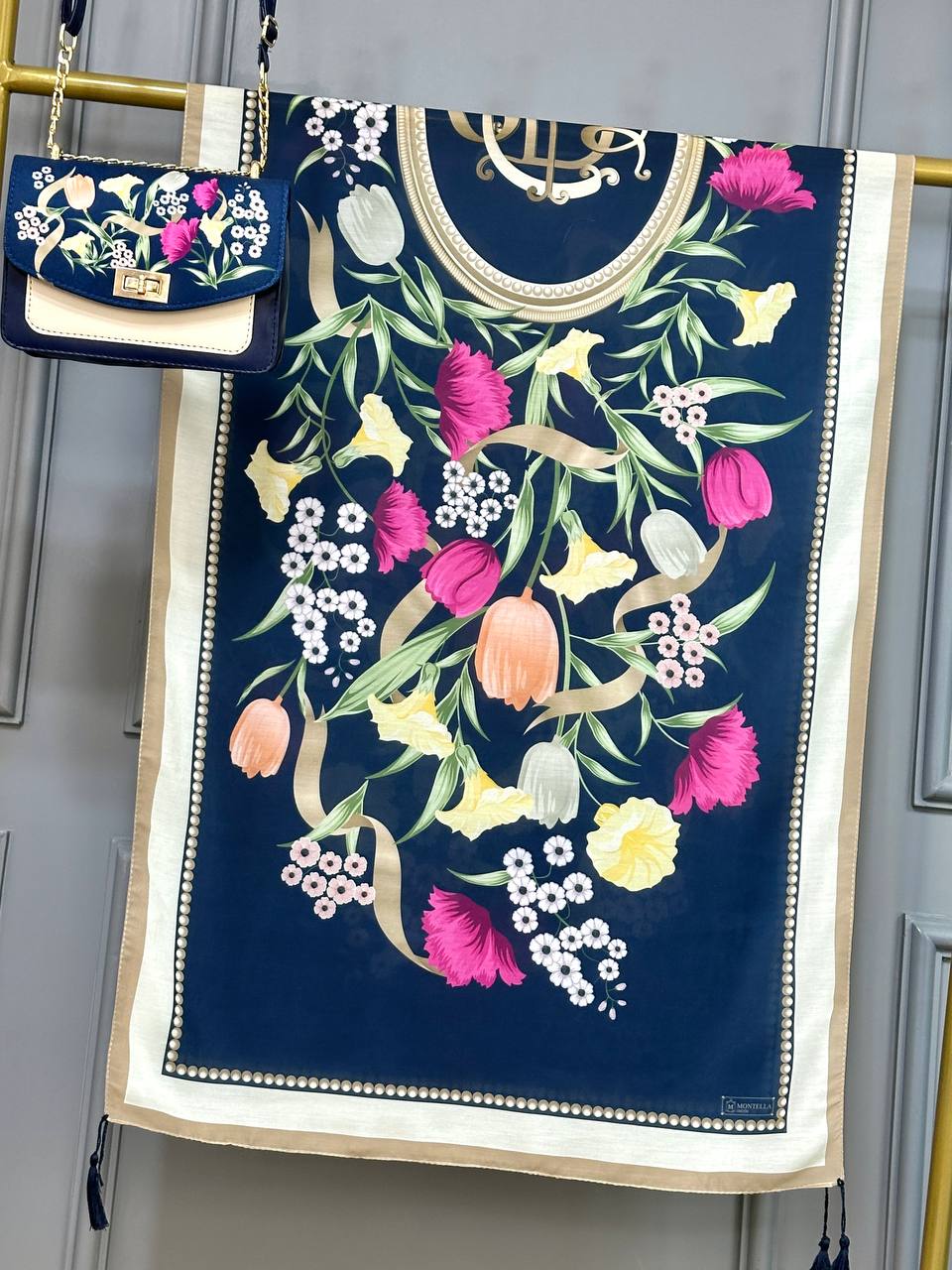 جنس روسری : نخ اسپان شال : نخ اسپان کیف : مخمل جیر و چرم رنگ 5 رنگ ابعاد روسری:130 سانتی متر شال :70*190 سانتی متر کیف B2 :ابعاد 17*22 سانتی متر کیف S1:ابعاد 21*33 سانتی متر دوخت دور چرخدوز طرح دیور