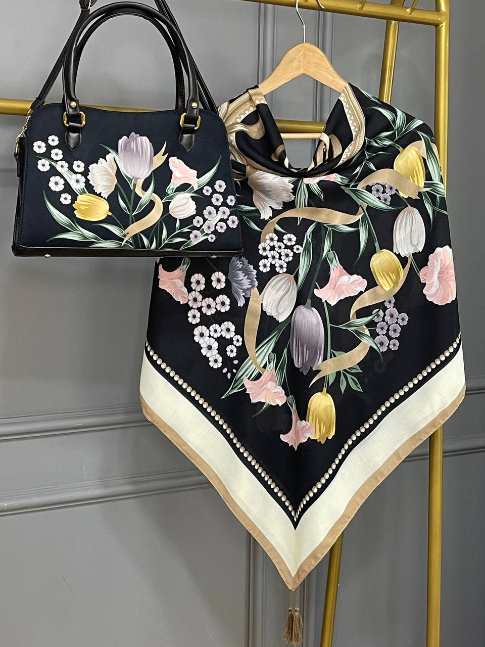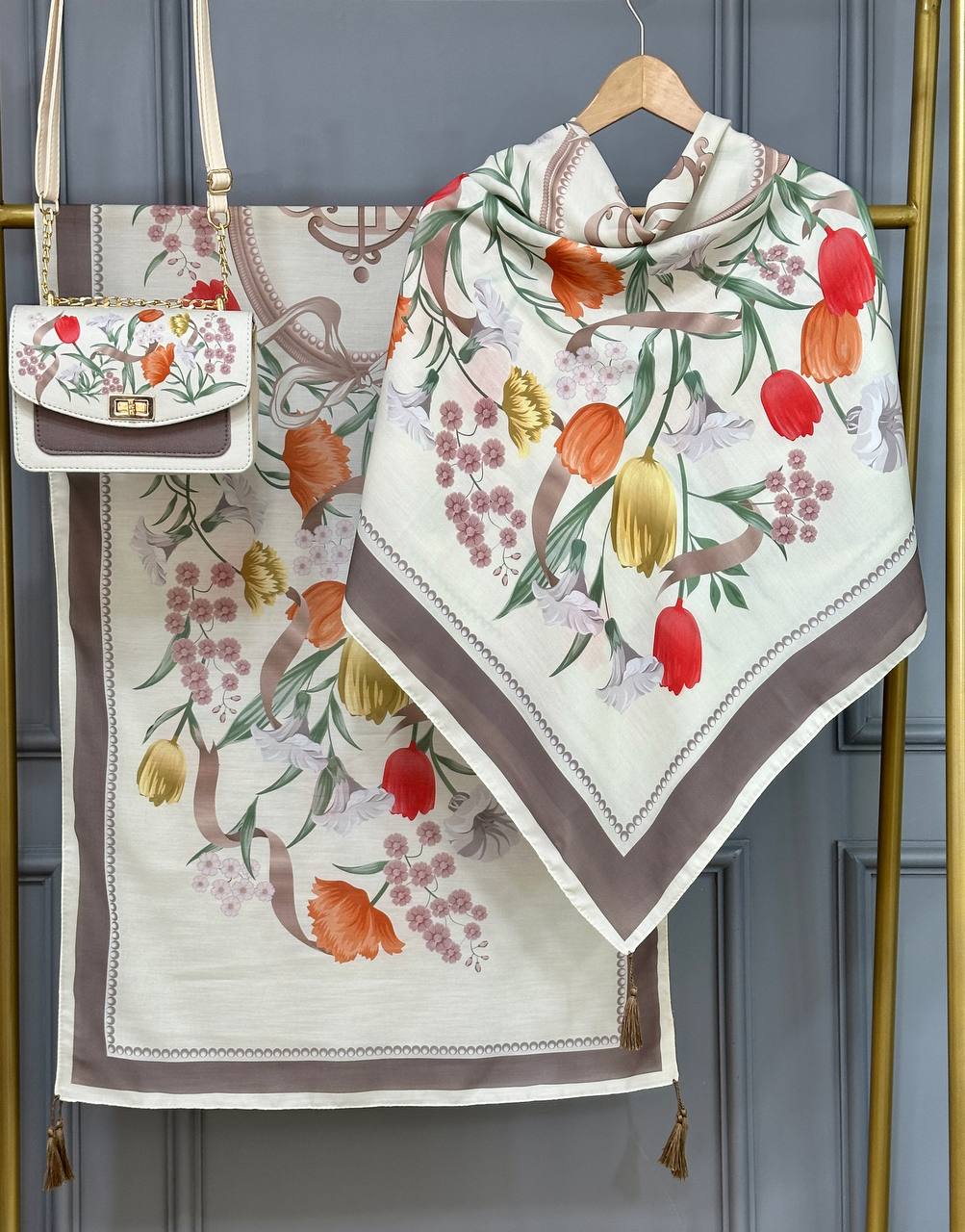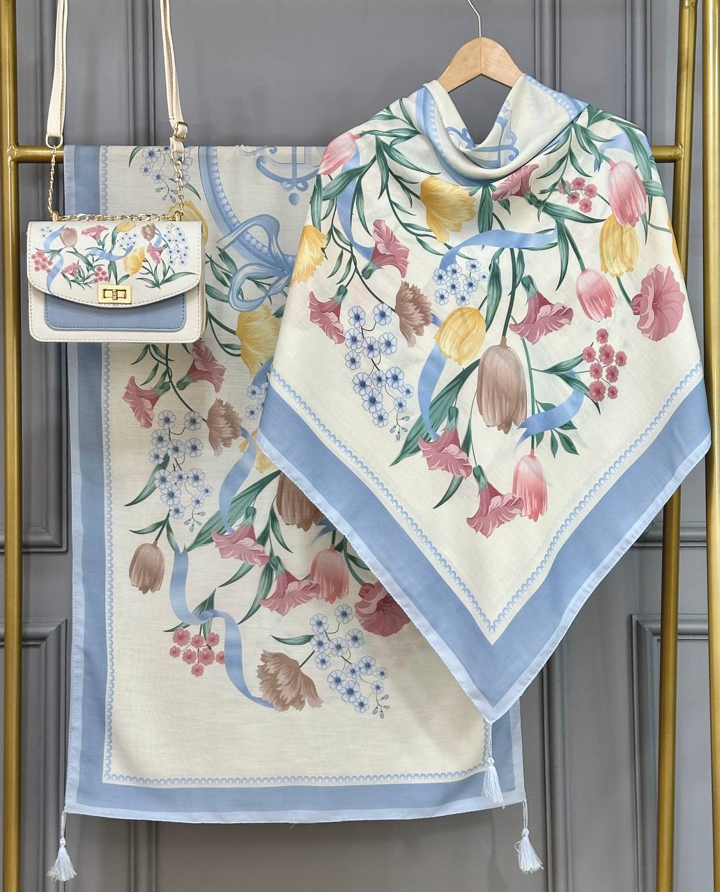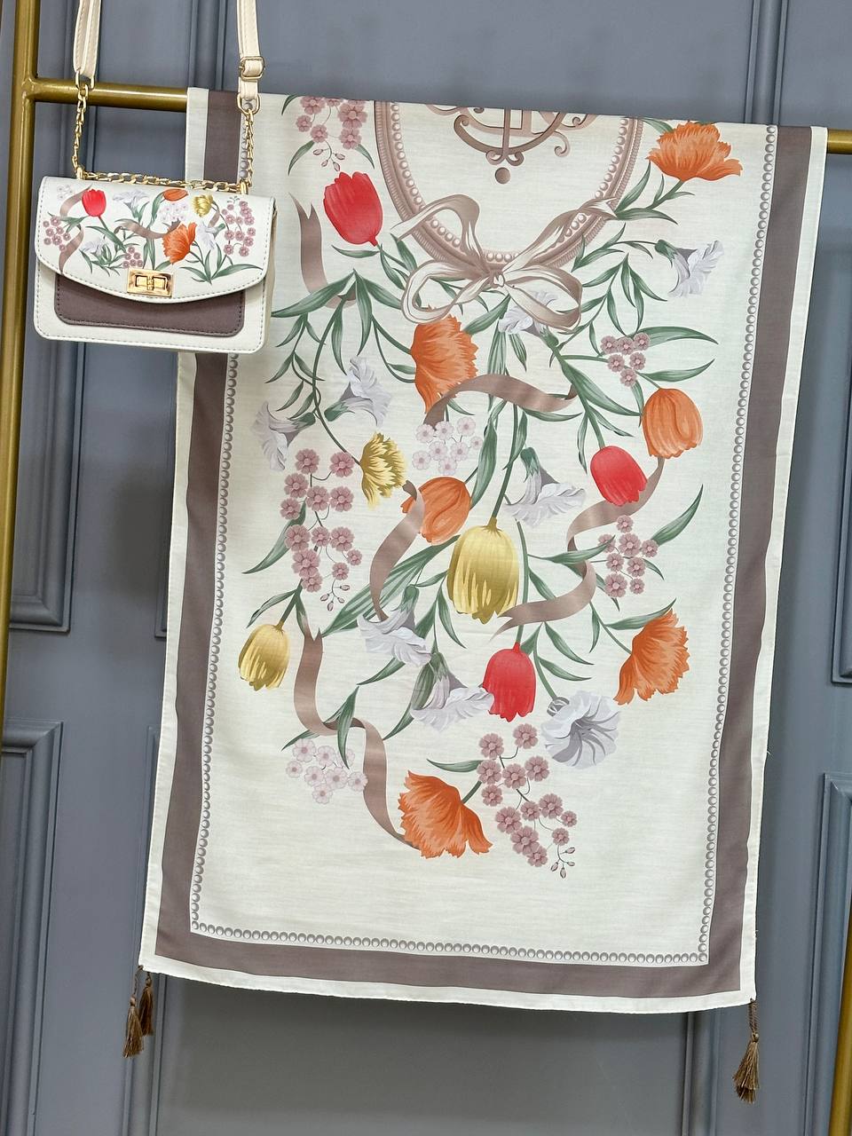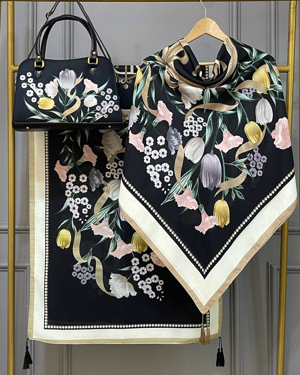 جنس روسری : نخ اسپان شال : نخ اسپان کیف : مخمل جیر و چرم رنگ 5 رنگ ابعاد روسری:130 سانتی متر شال :70*190 سانتی متر کیف B2 :ابعاد 17*22 سانتی متر کیف S1:ابعاد 21*33 سانتی متر دوخت دور چرخدوز طرح دیور