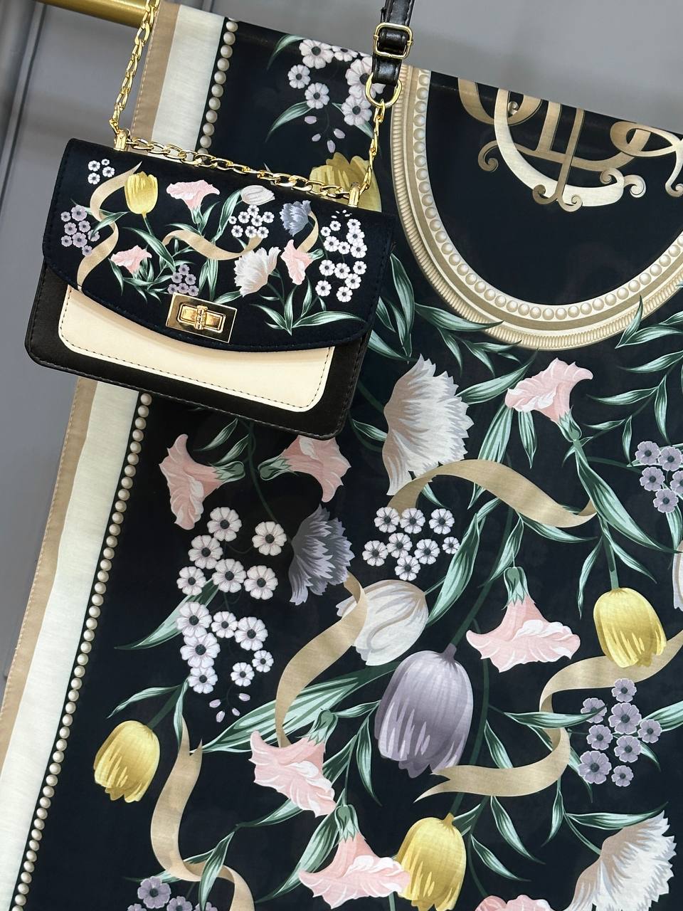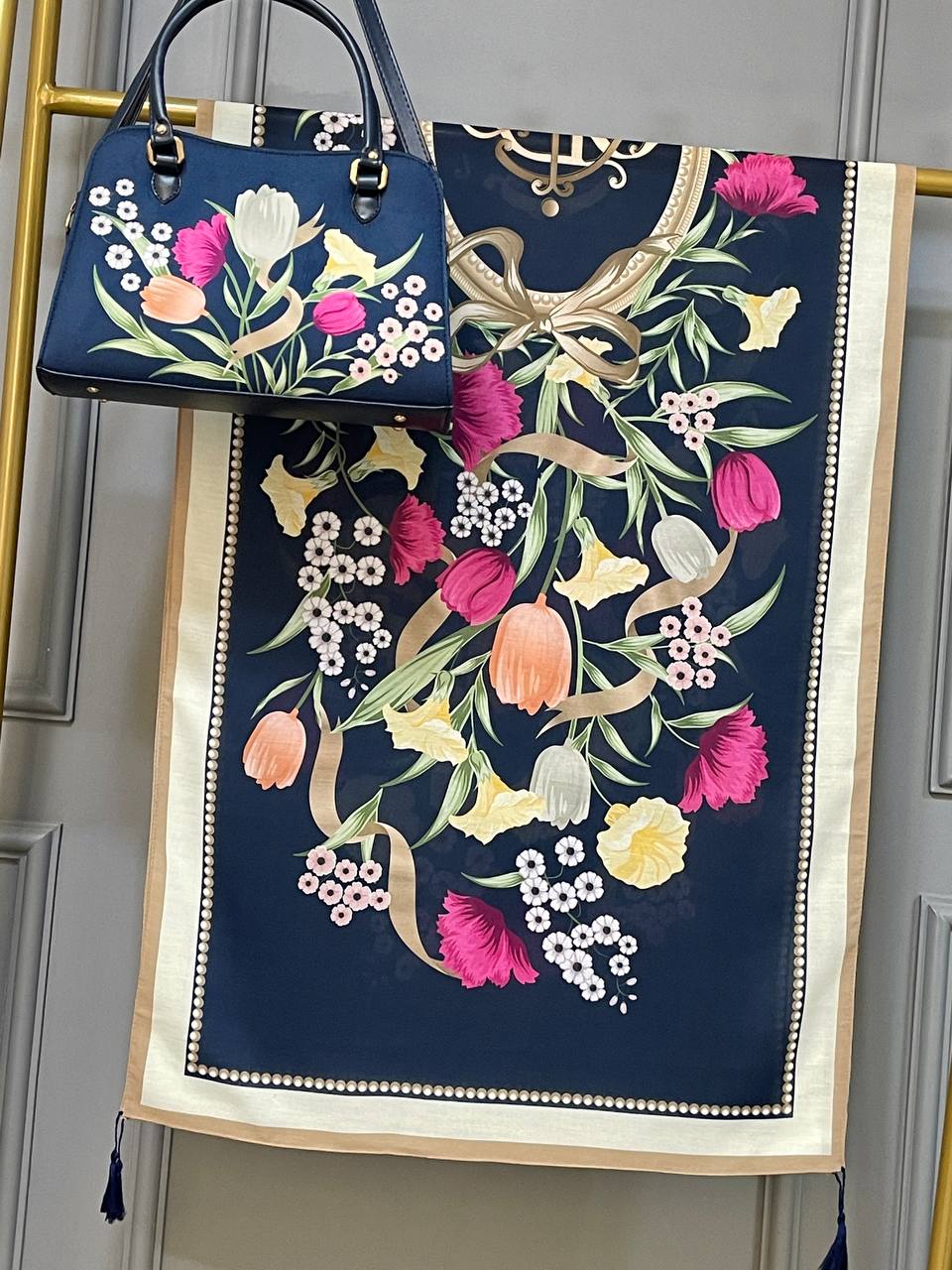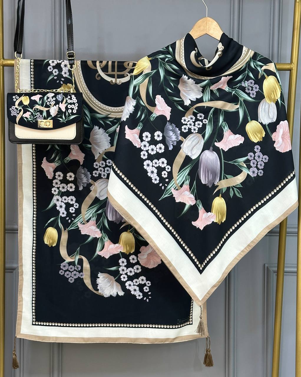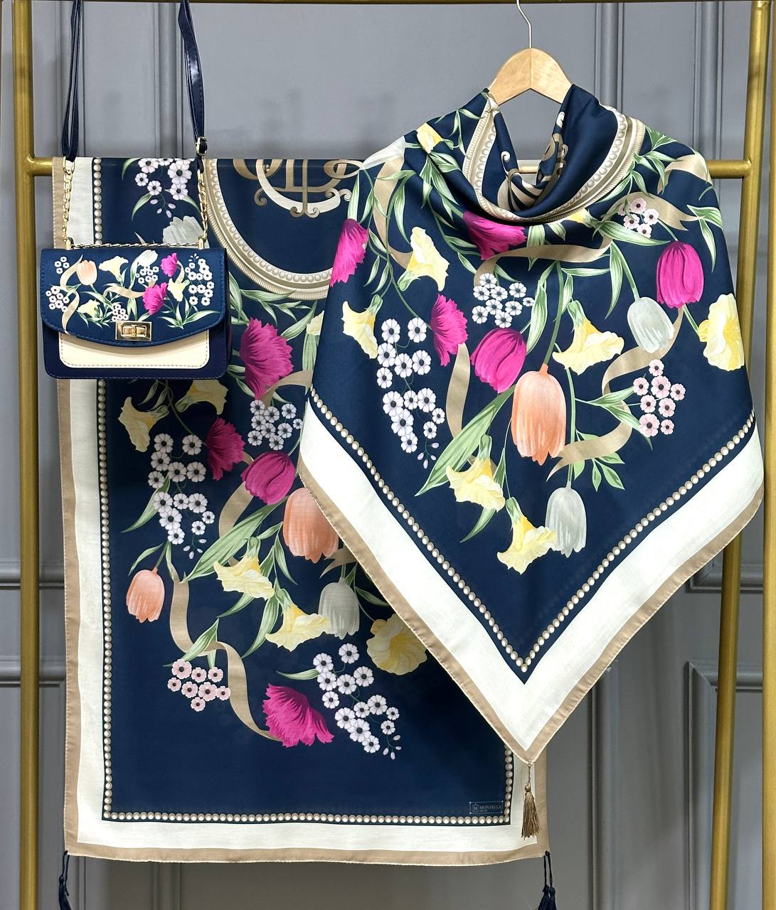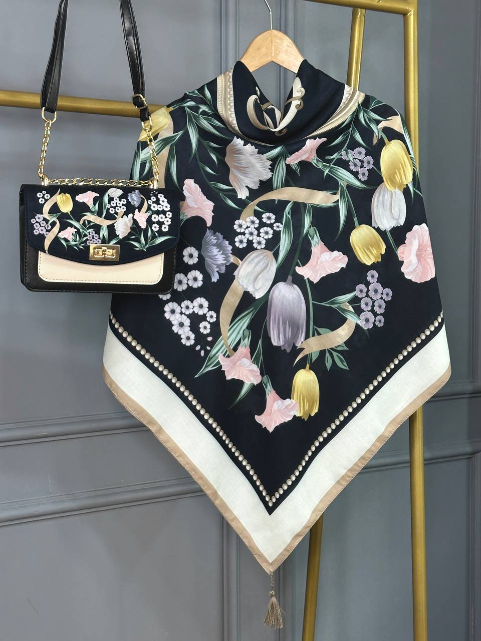 جنس روسری : نخ اسپان شال : نخ اسپان کیف : مخمل جیر و چرم رنگ 5 رنگ ابعاد روسری:130 سانتی متر شال :70*190 سانتی متر کیف B2 :ابعاد 17*22 سانتی متر کیف S1:ابعاد 21*33 سانتی متر دوخت دور چرخدوز طرح دیور