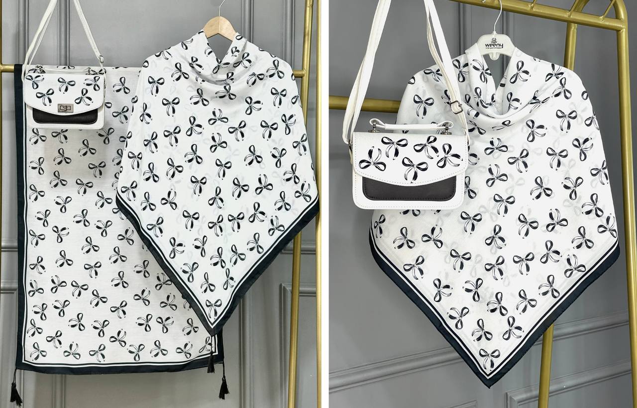 یک ست کامل و هماهنگ شامل روسری، شال و کیف که در ۱۰ رنگ جذاب عرضه شده و انتخابی عالی برای استایلهای روزمره و مهمانی است.