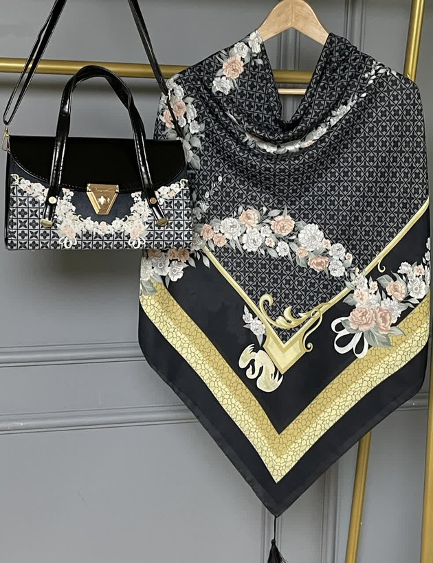 ست کیف و روسری یا شال ال وی ماکان مشکی