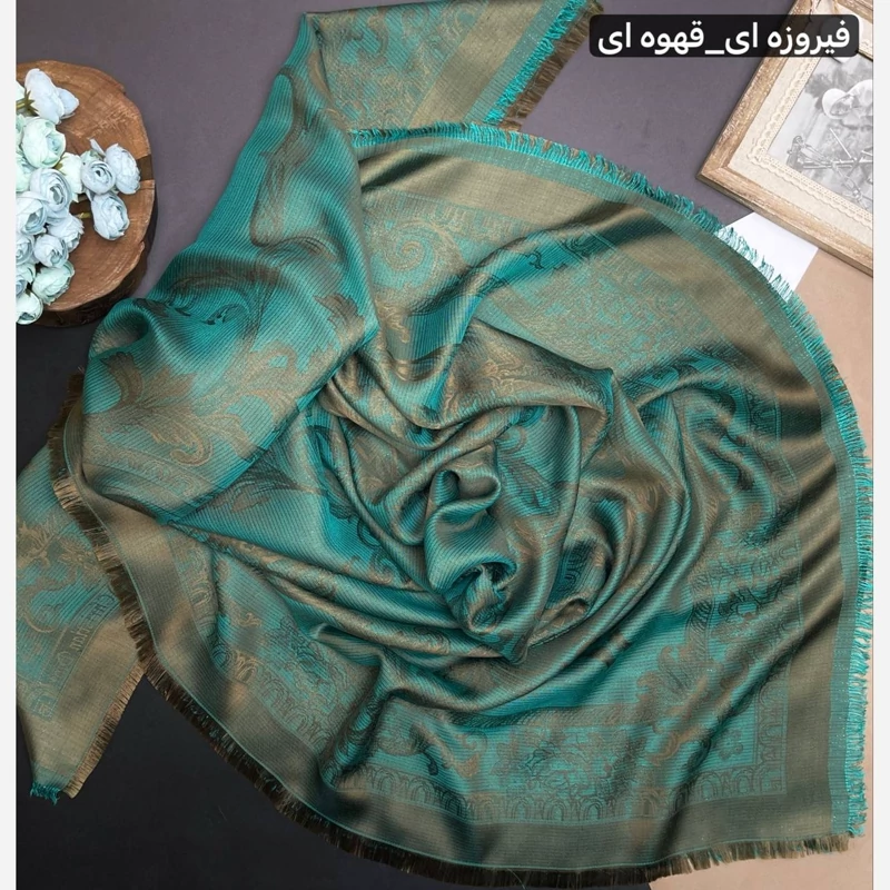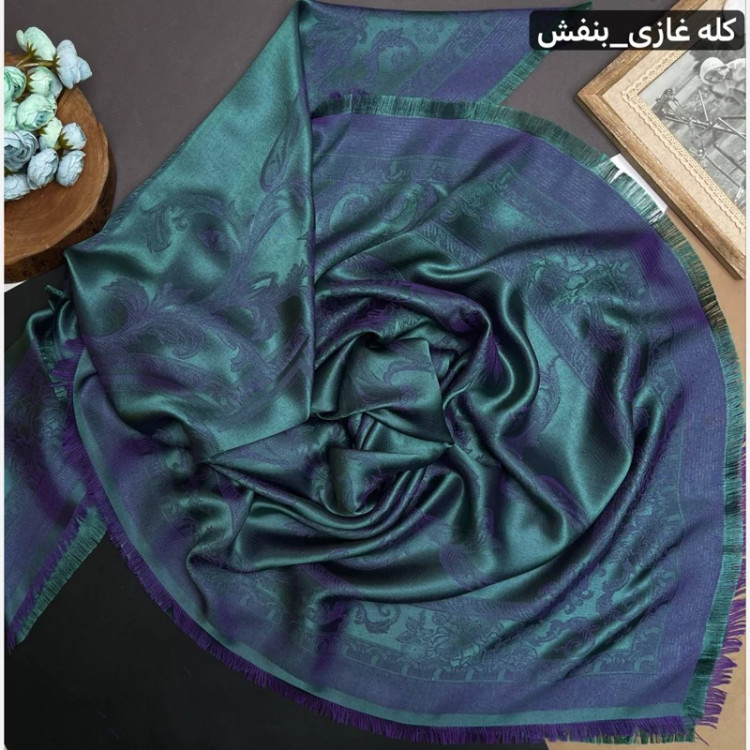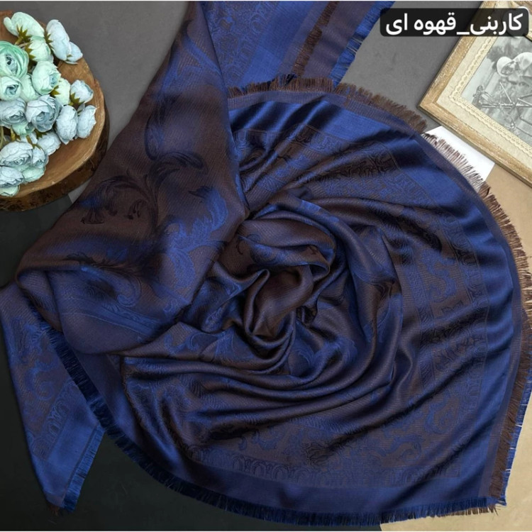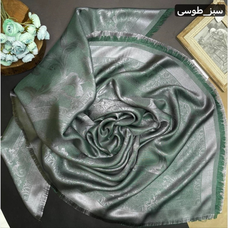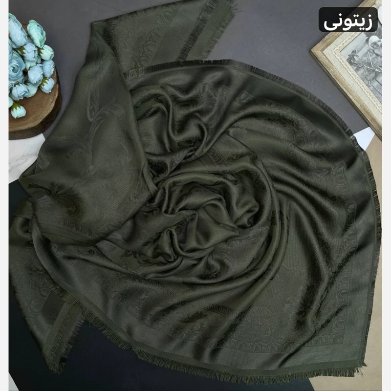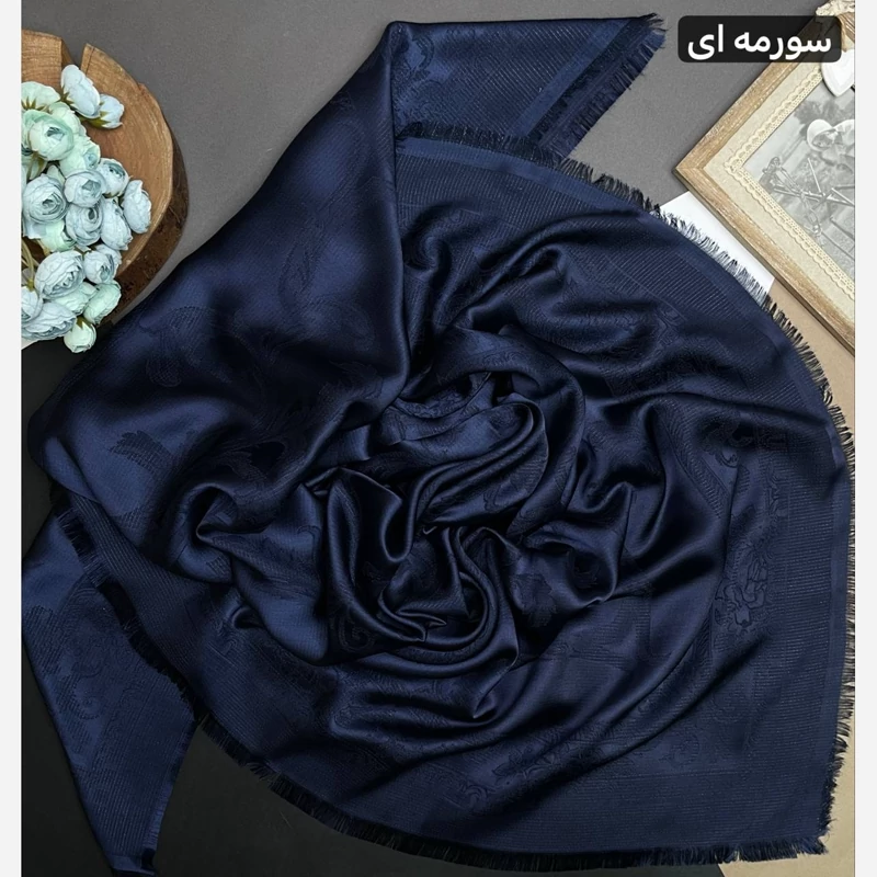 روسری نخ ابریشم ژاکارد طرح اسلیمی لمه دار دورو