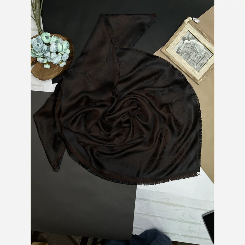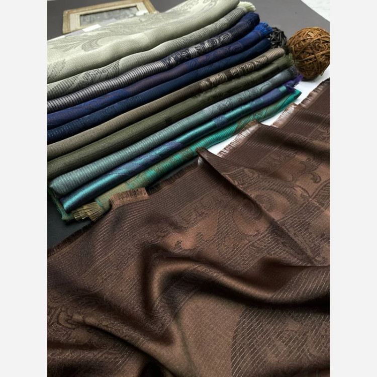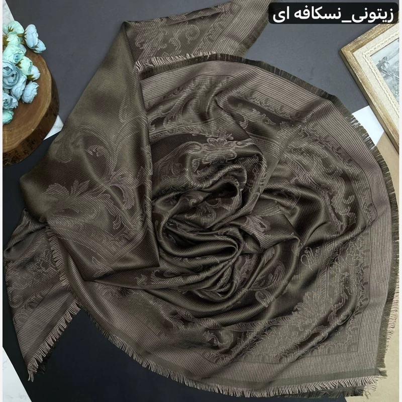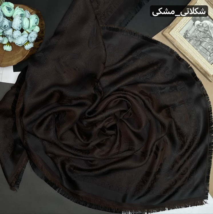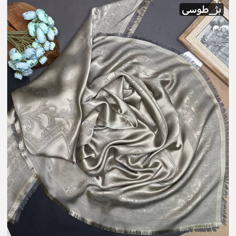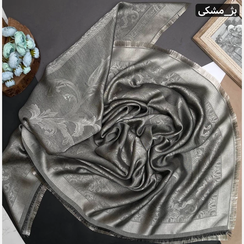 روسری نخ ابریشم ژاکارد طرح اسلیمی لمه دار دورو