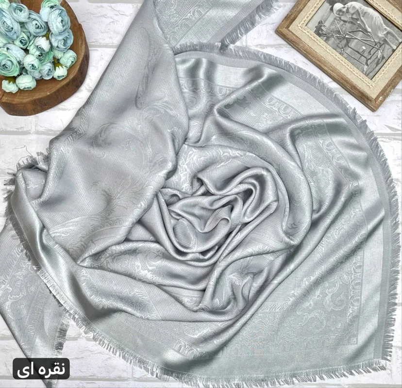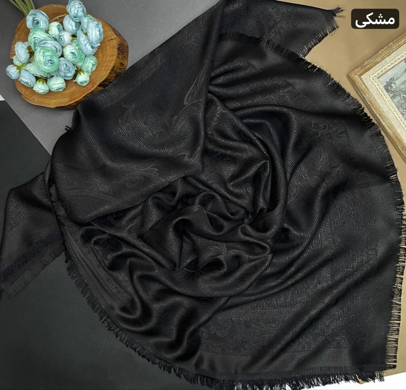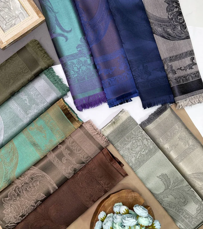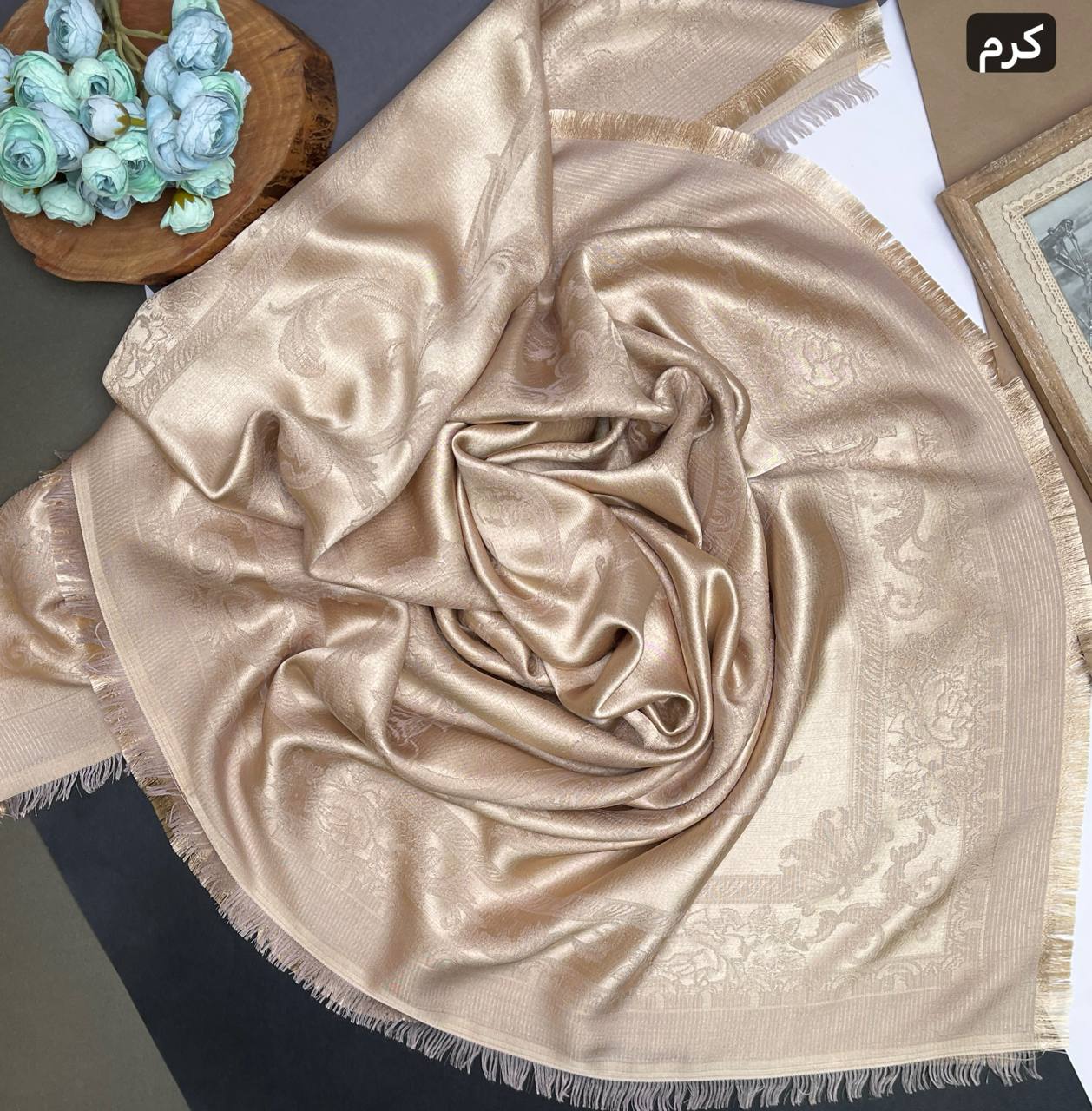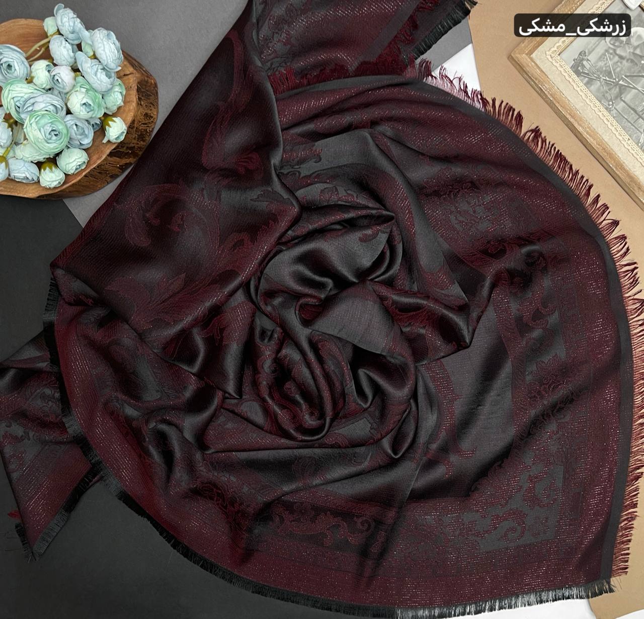 روسری نخ ابریشم ژاکارد طرح اسلیمی لمه دار دورو