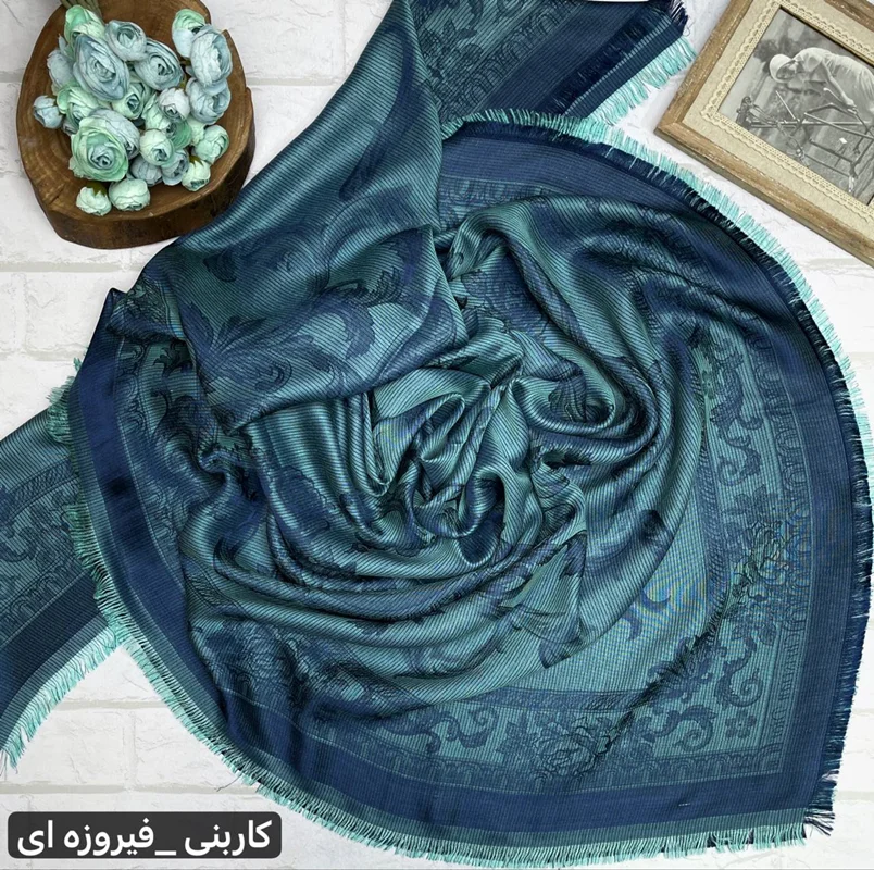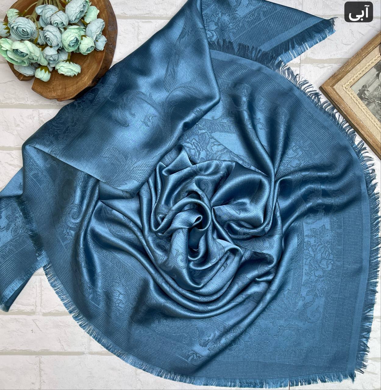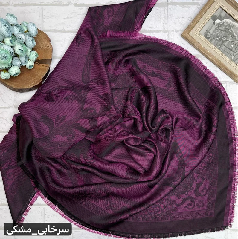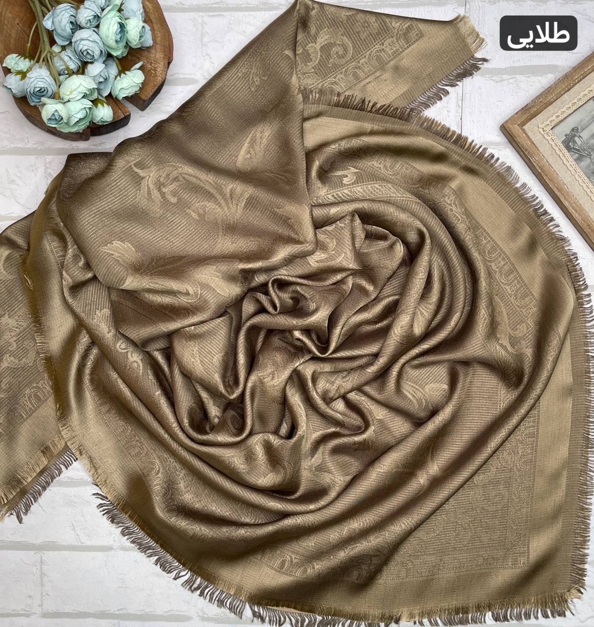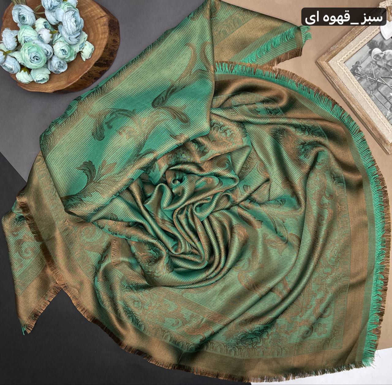 روسری نخ ابریشم ژاکارد طرح اسلیمی لمه دار دورو