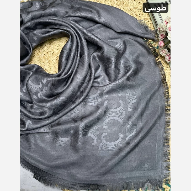 روسری نخ ابریشم ژاکارد سلین درشت لمه دار دورو CELINE