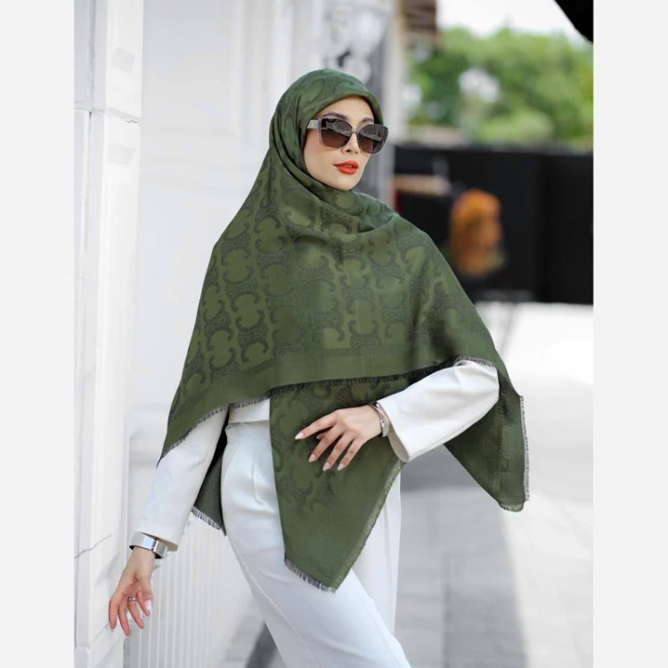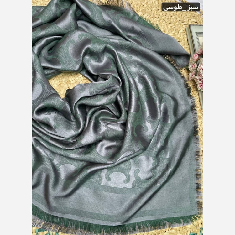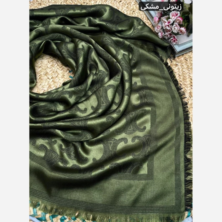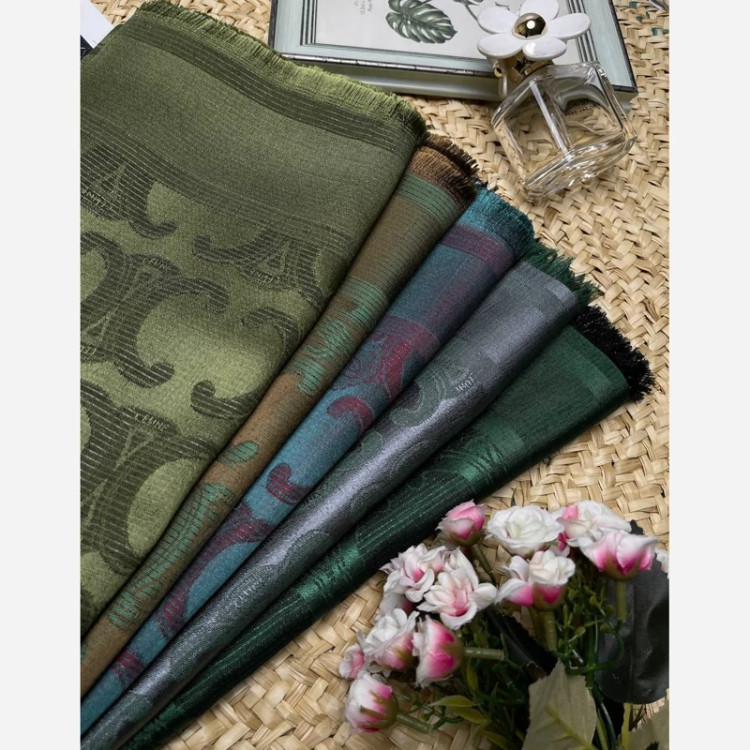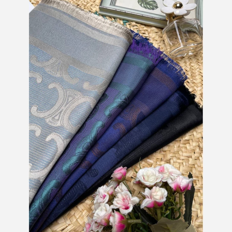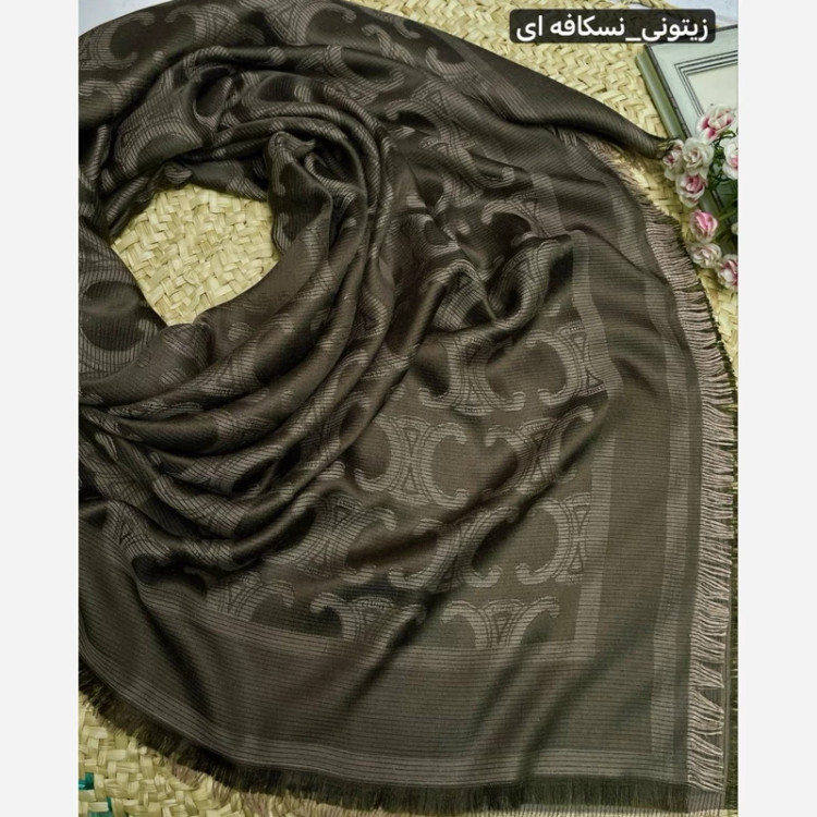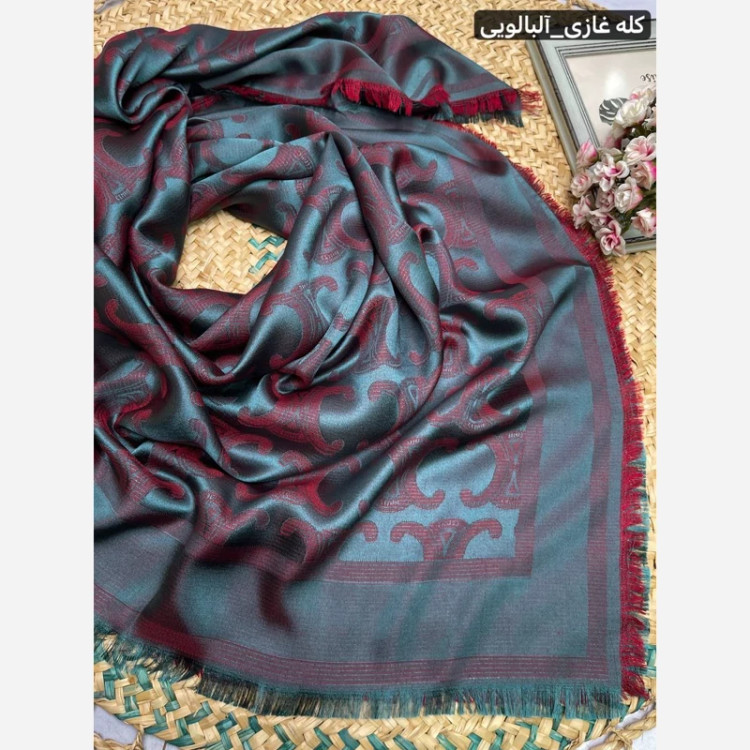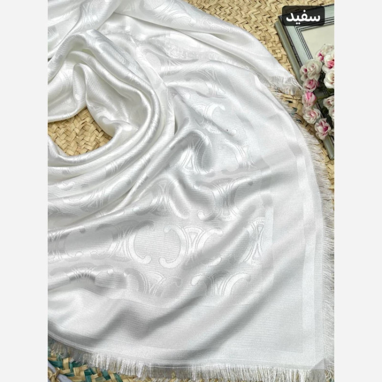 روسری نخ ابریشم ژاکارد سلین درشت لمه دار دورو CELINE