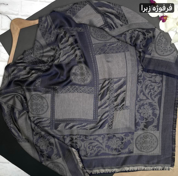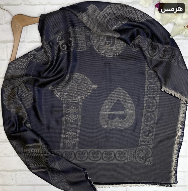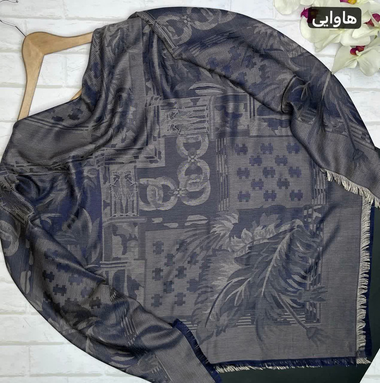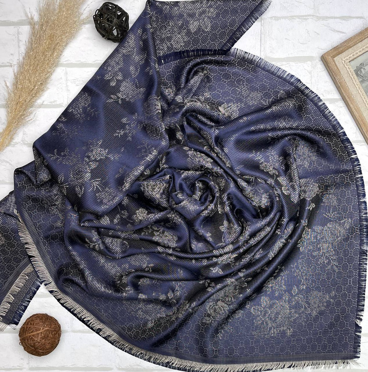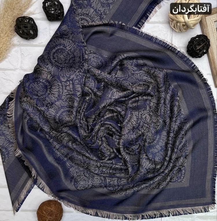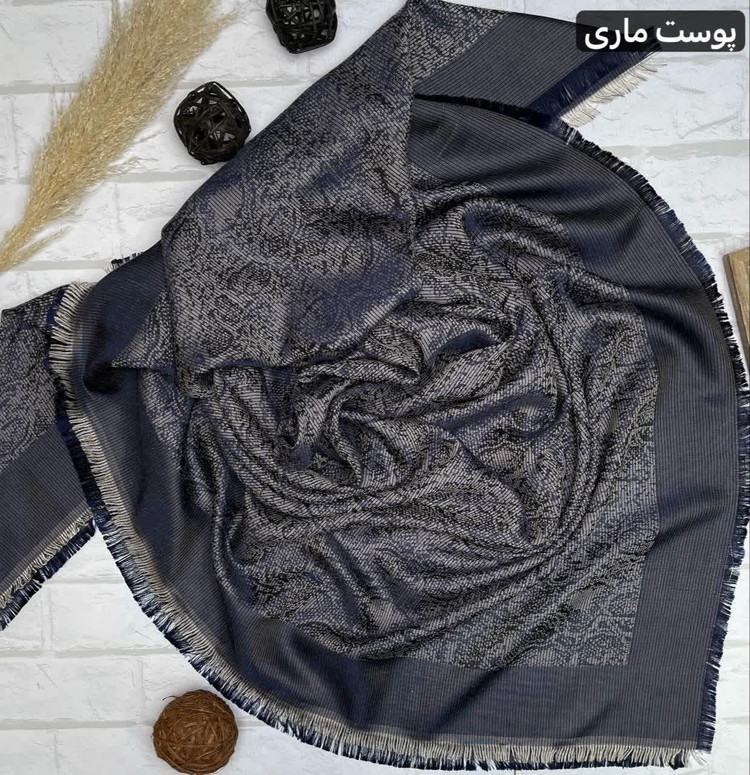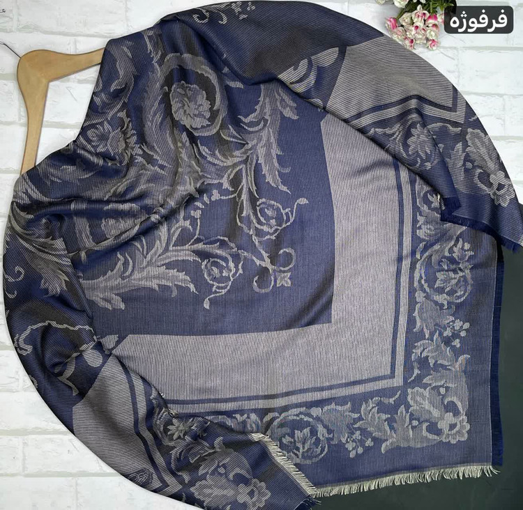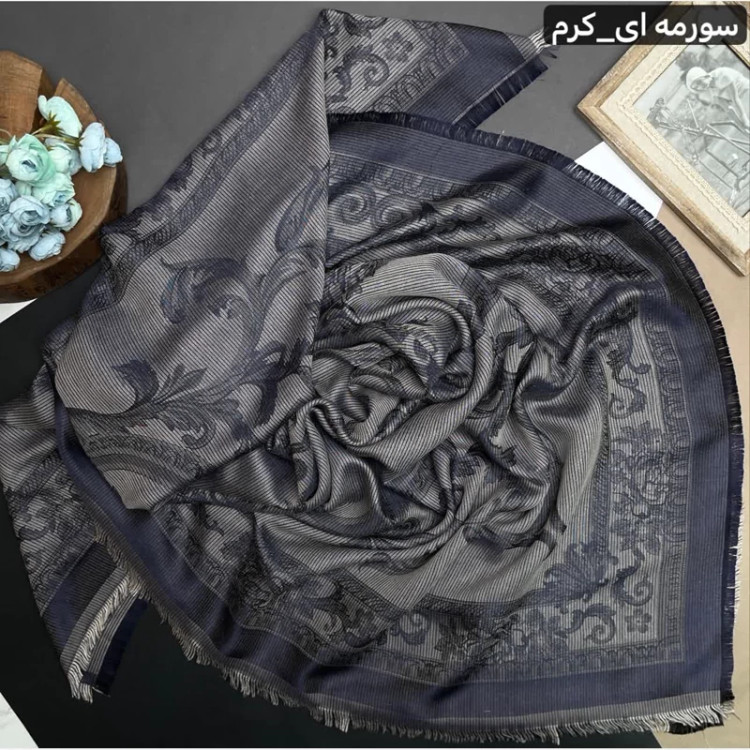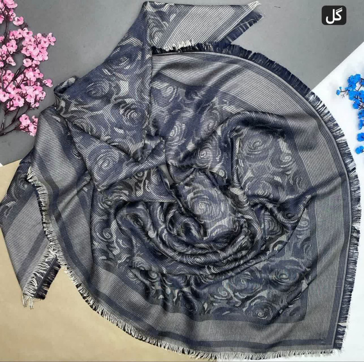 روسری،نخ،ابریشم،ژاکارد،لمه دار،سورمه ای کرم قواره ۱۴۰ ارسال رایگان