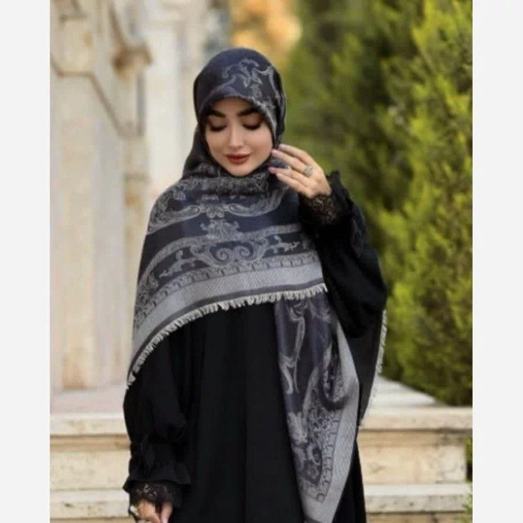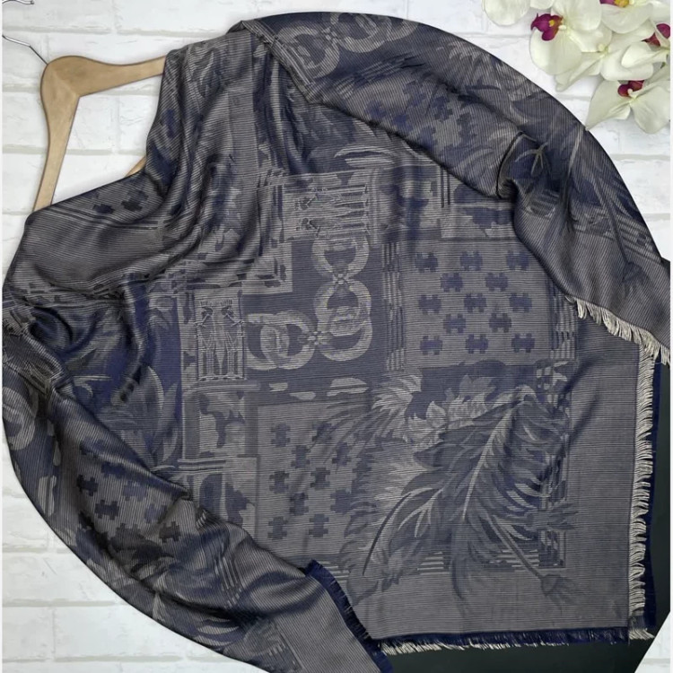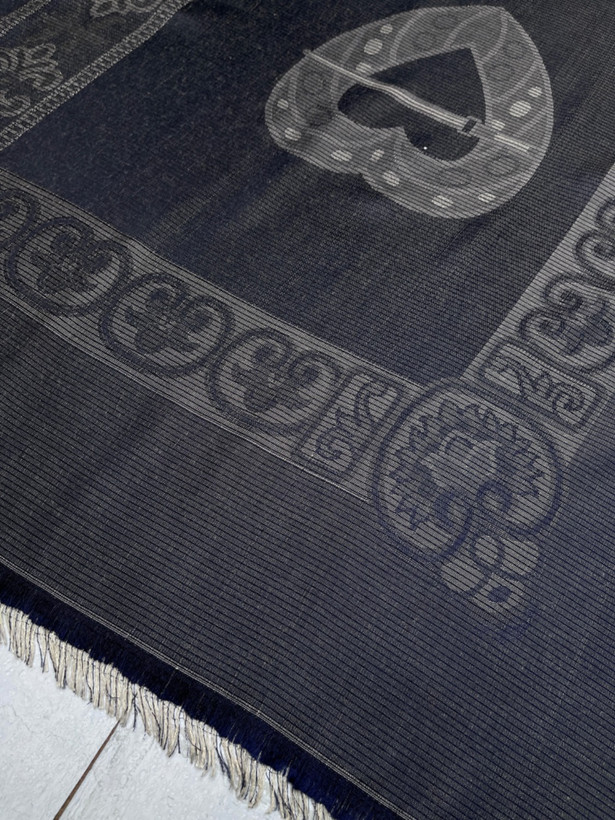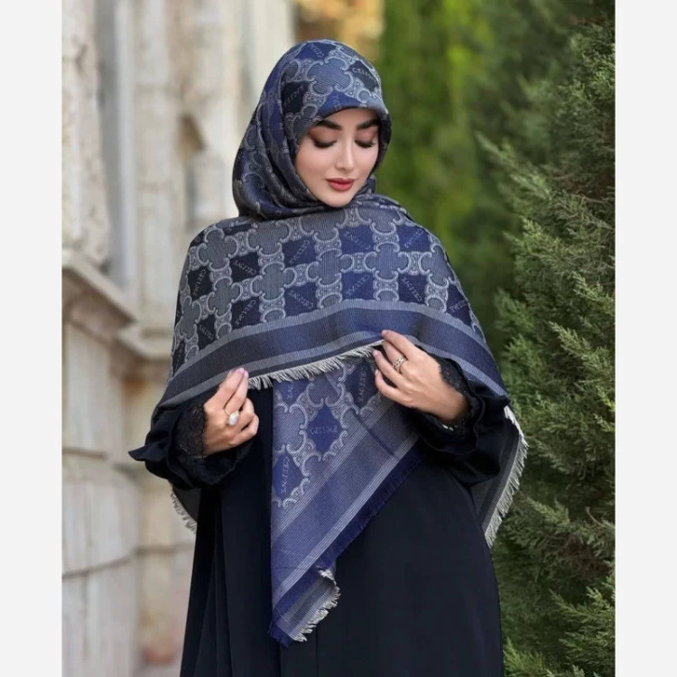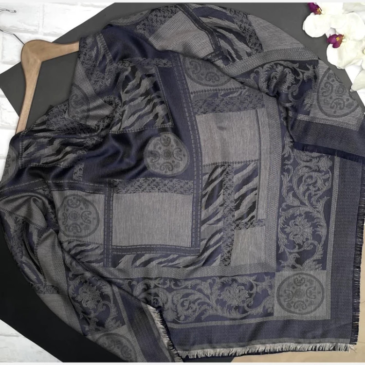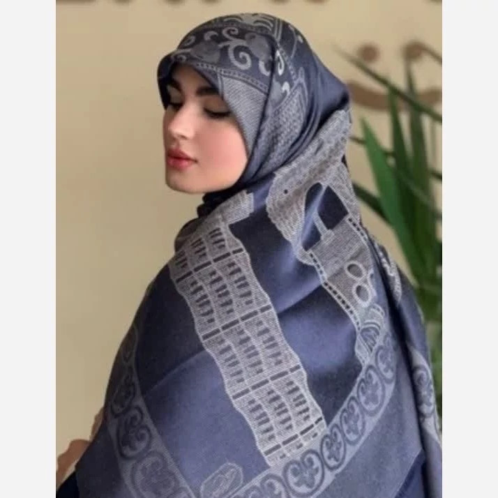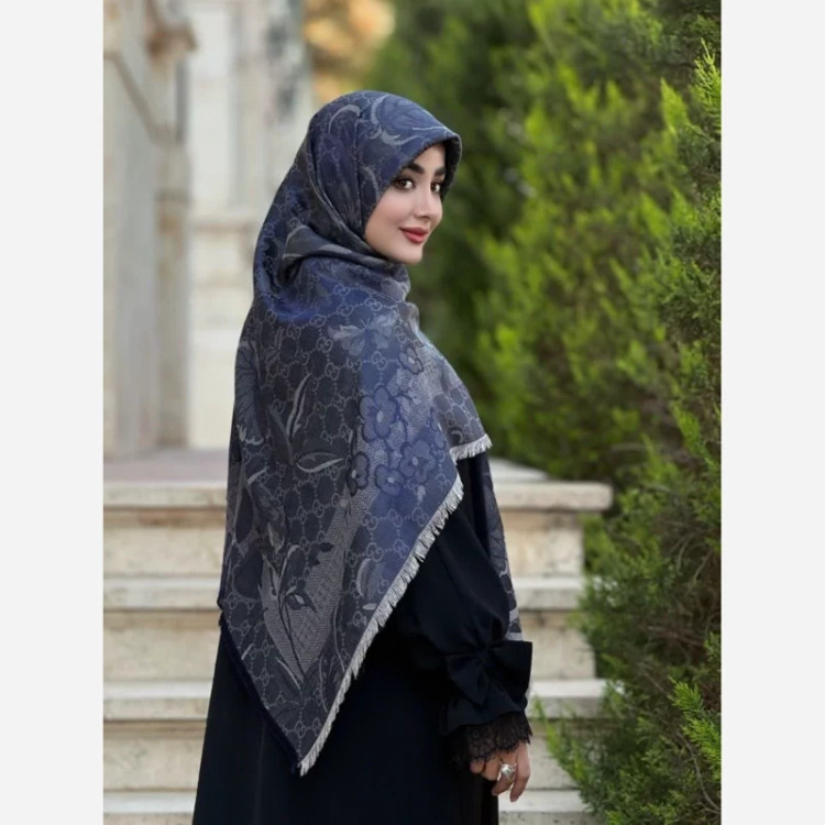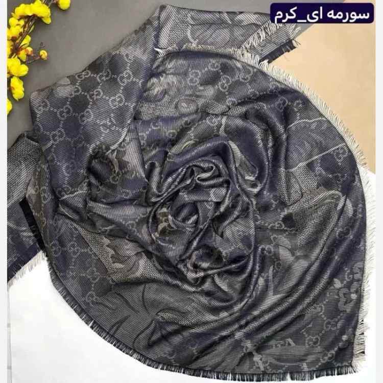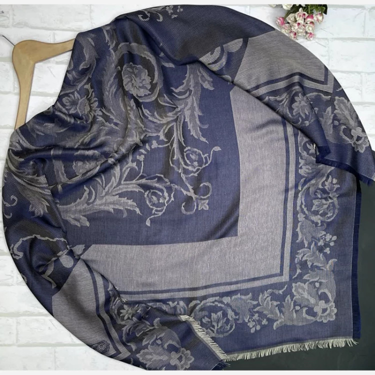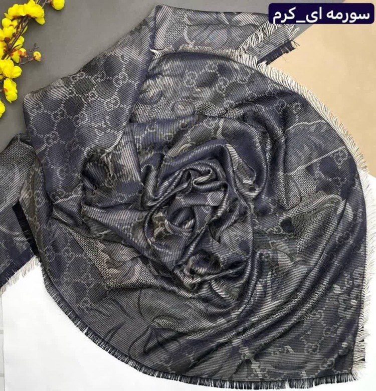روسری،نخ،ابریشم،ژاکارد،لمه دار،سورمه ای کرم قواره ۱۴۰ ارسال رایگان