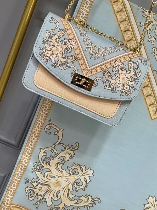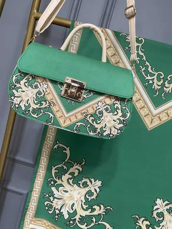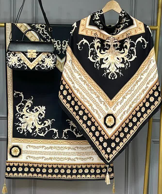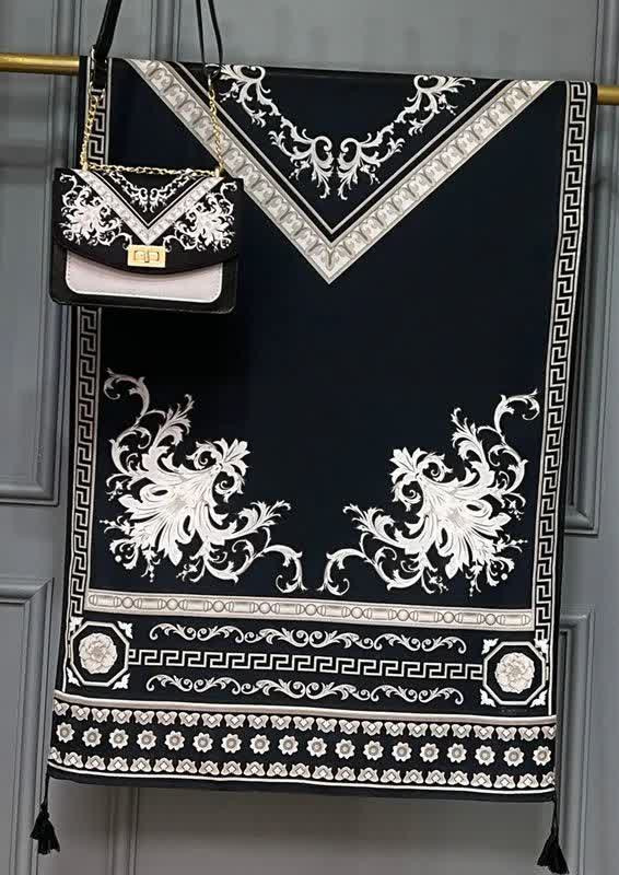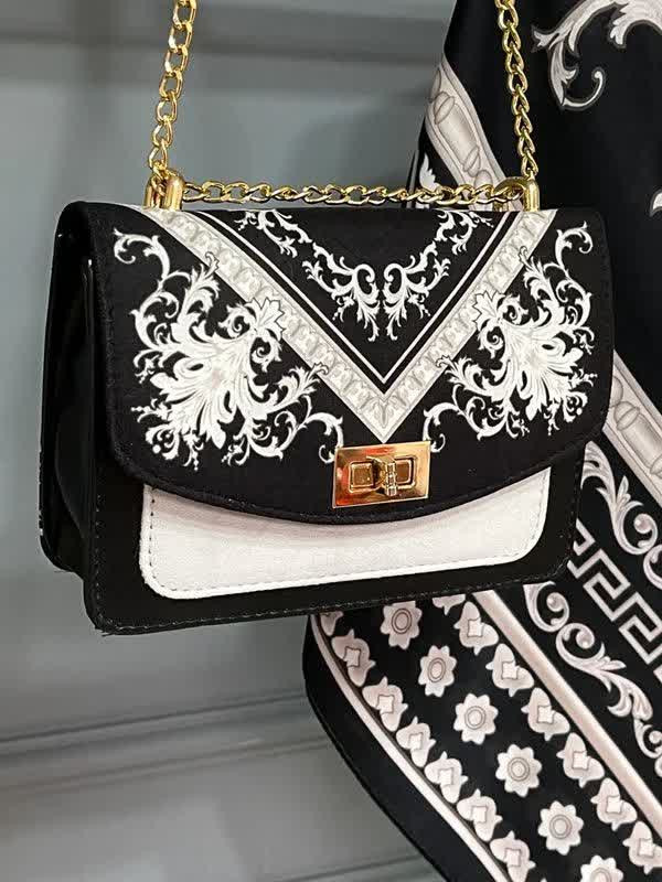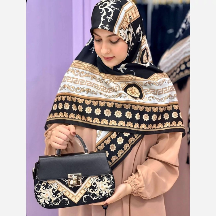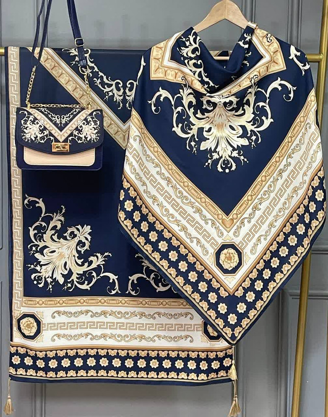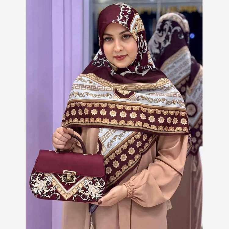 🍷✨ سورنا 👜 جنس کیف: ترکیبی از پارچه مخمل و چرم صنعتی باکیفیت 🎒 دارای بند دوشی 📏 ابعاد کیف: 27×17 cm 🧕 ابعاد روسری: 130 سانت 🧣 ابعاد شال: 190×70 سانت 💎 شیک، خاص و چشمگیر 💰 قیمت با ارسال رایگان: 810 🚚🎁 «روسری سیا اسکارف جنسش نخی اعلاست 🌿 خیلی نرم و راحته، لیز نیست و روی سر خوشفرم میایسته، برای استفاده روزمره هم عالیه 🤍»