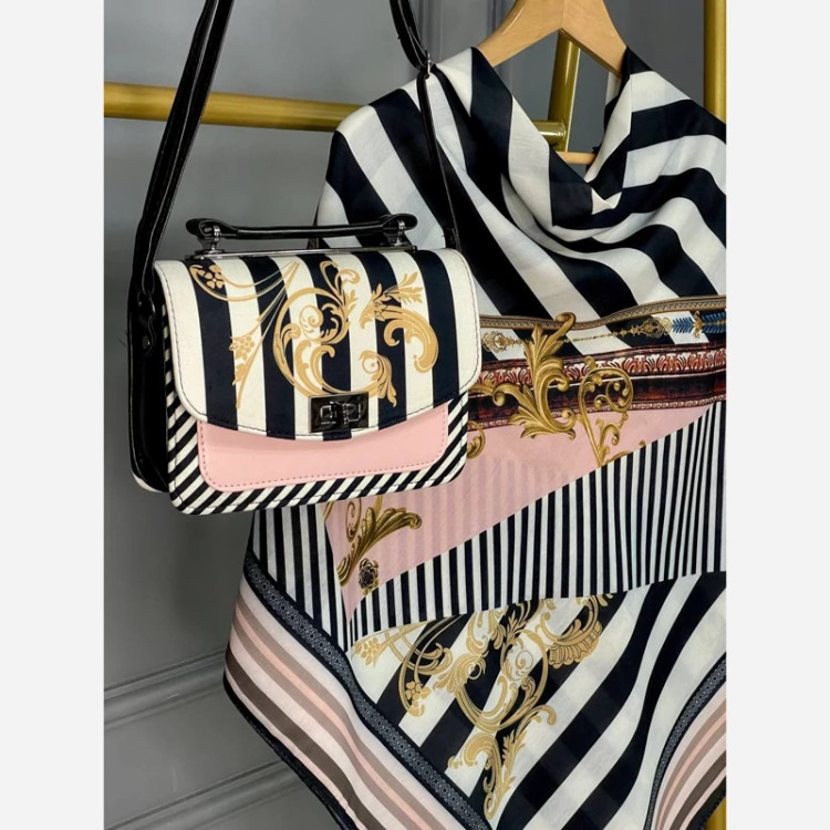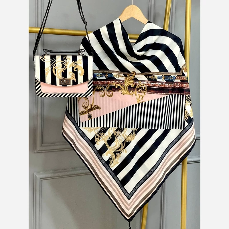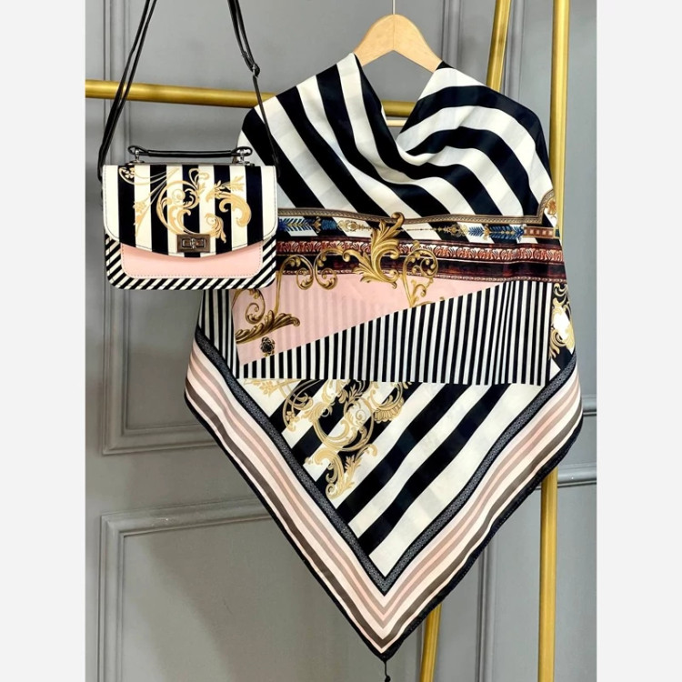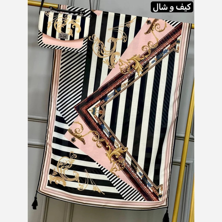 ست کیف و روسری یا شال نخ اسپان مدل کارینا گلدن / ارسال رایگان