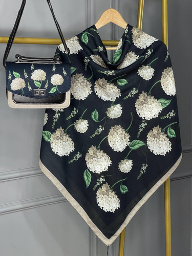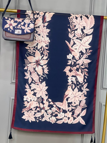 روسری حریر ایتالیایی طرح گل و پرنده / ارسال رایگان