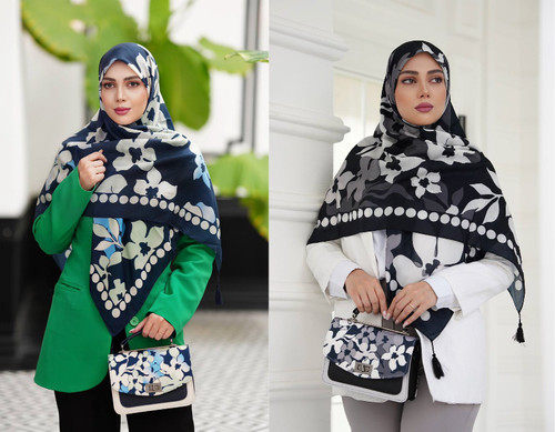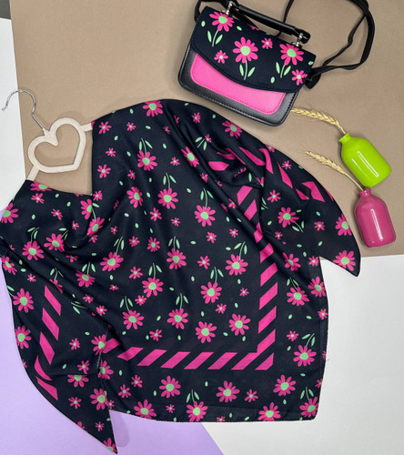 🌿 روسری سیااسکارف ،طرح گلبرگ قواره ۱۴۰ ، ارسال رایگان