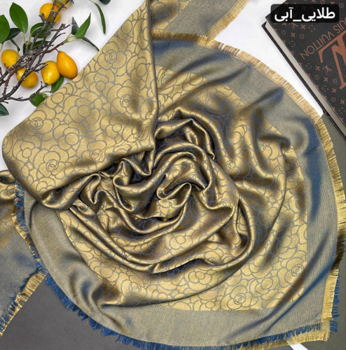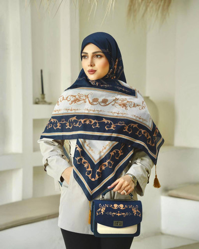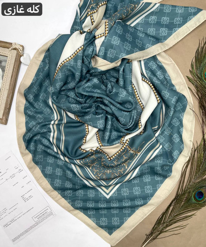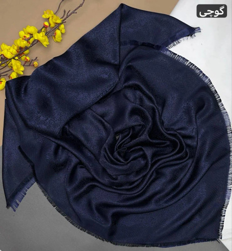 روسری،نخ،ابریشم،ژاکارد،لمه دار،سورمه ای کرم قواره ۱۴۰ ارسال رایگان