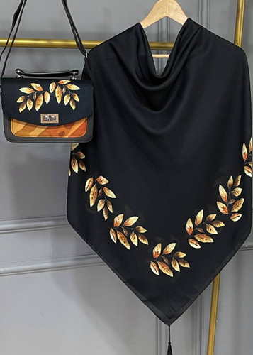 ست کیف و روسری برگ هانا زنانه نخ اسپان با کیف مخمل و جیر