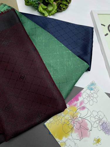 روسری نخ ابریشم ژاکارد طرح گل شانل لمه دار دورو