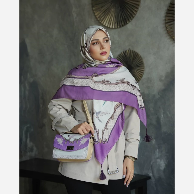روسری نخ ژاکارد طوسی سایز ۱۳۵ | ریشه سوزنی، ارسال رایگان