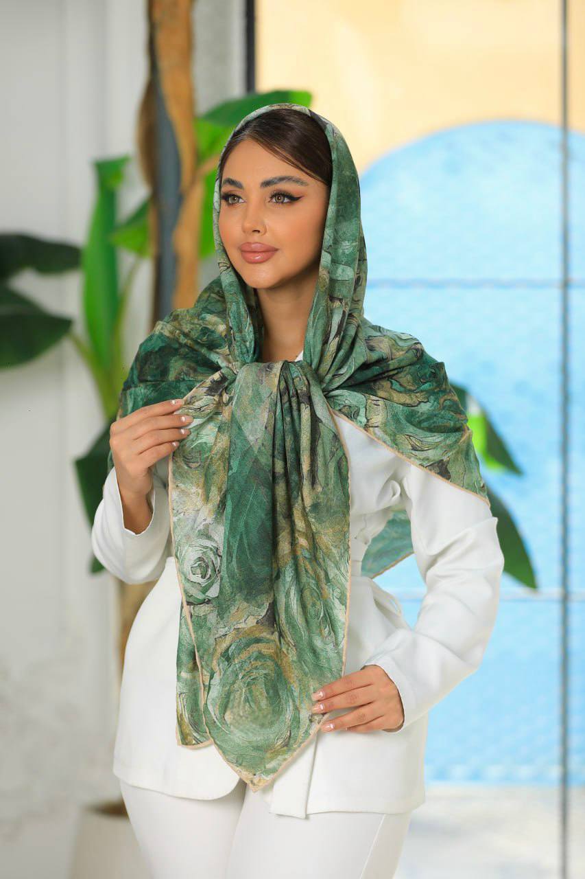 🌿 روسری سیااسکارف ،طرح گلبرگ قواره ۱۴۰ ، ارسال رایگان