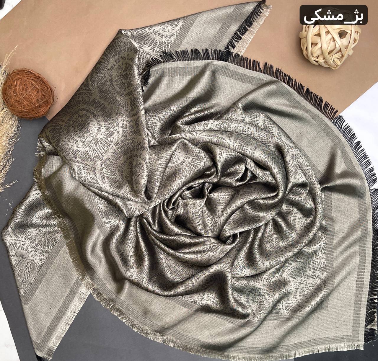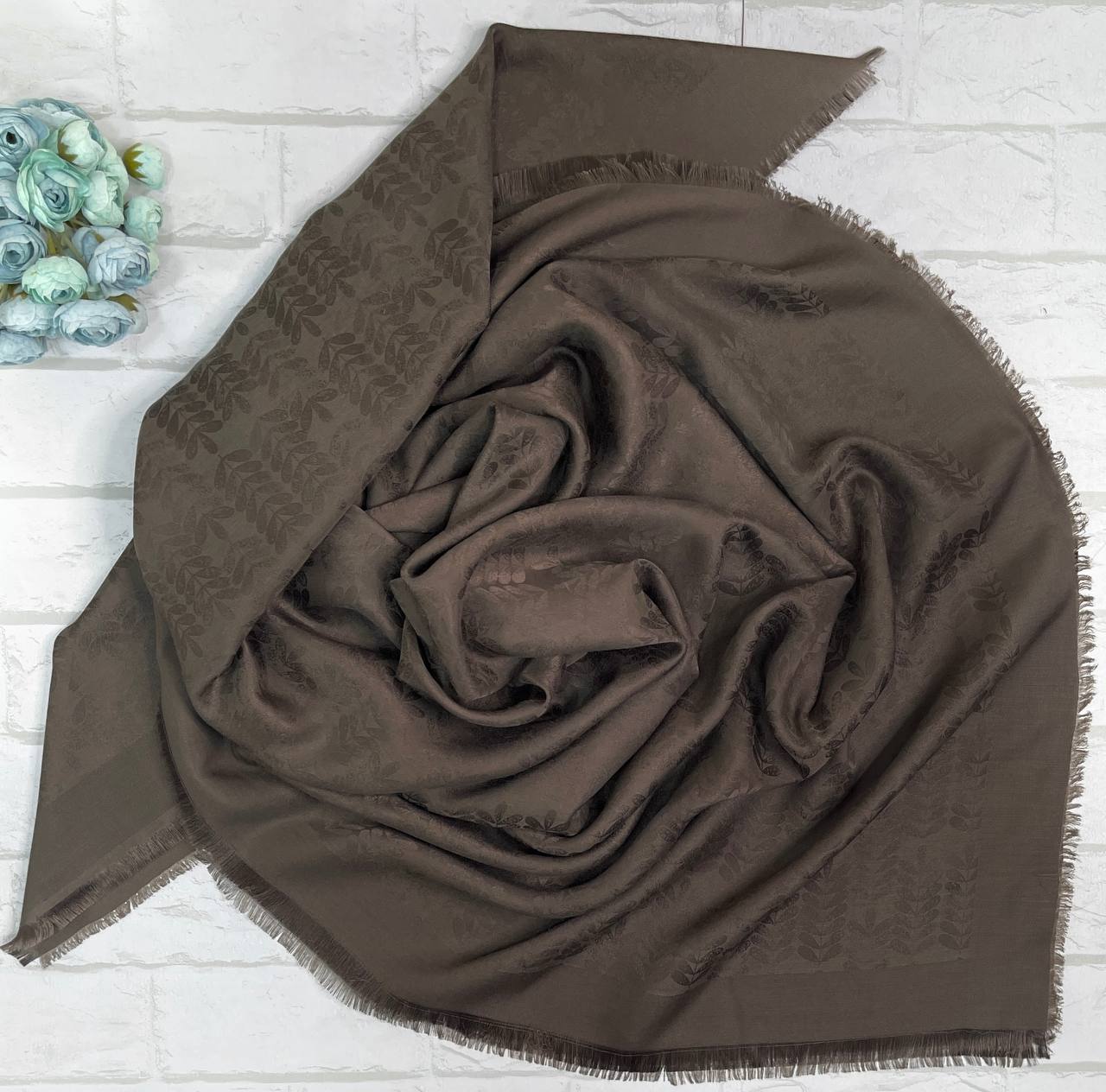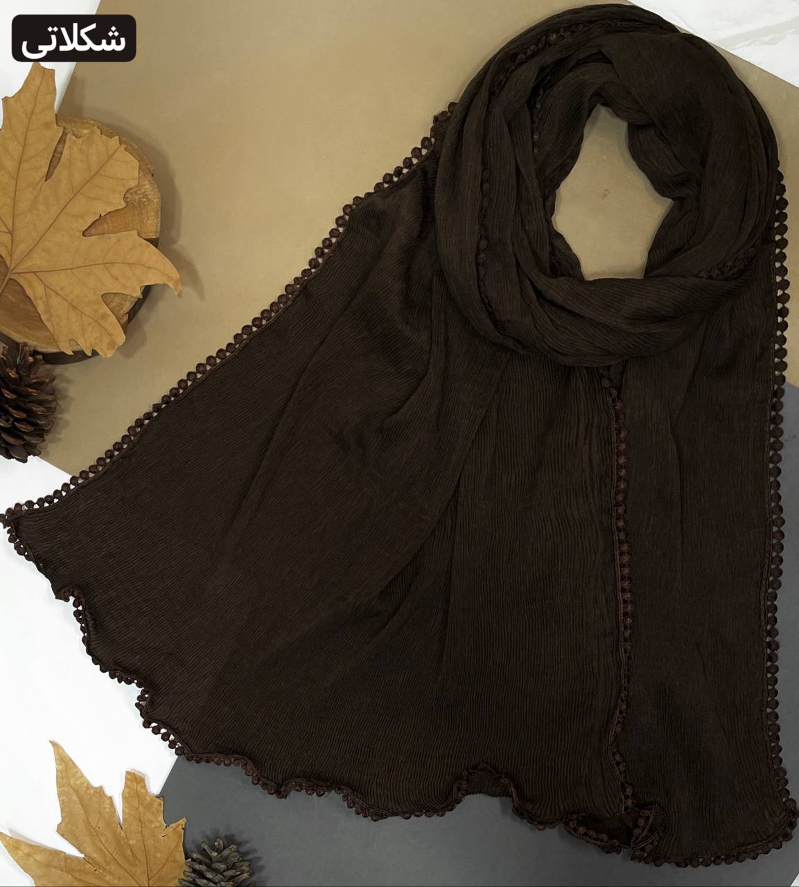 روسری نخ ژاکارد رنگ موکا سایز ۱۳۵ | ریشه سوزنی ارسال رایگان