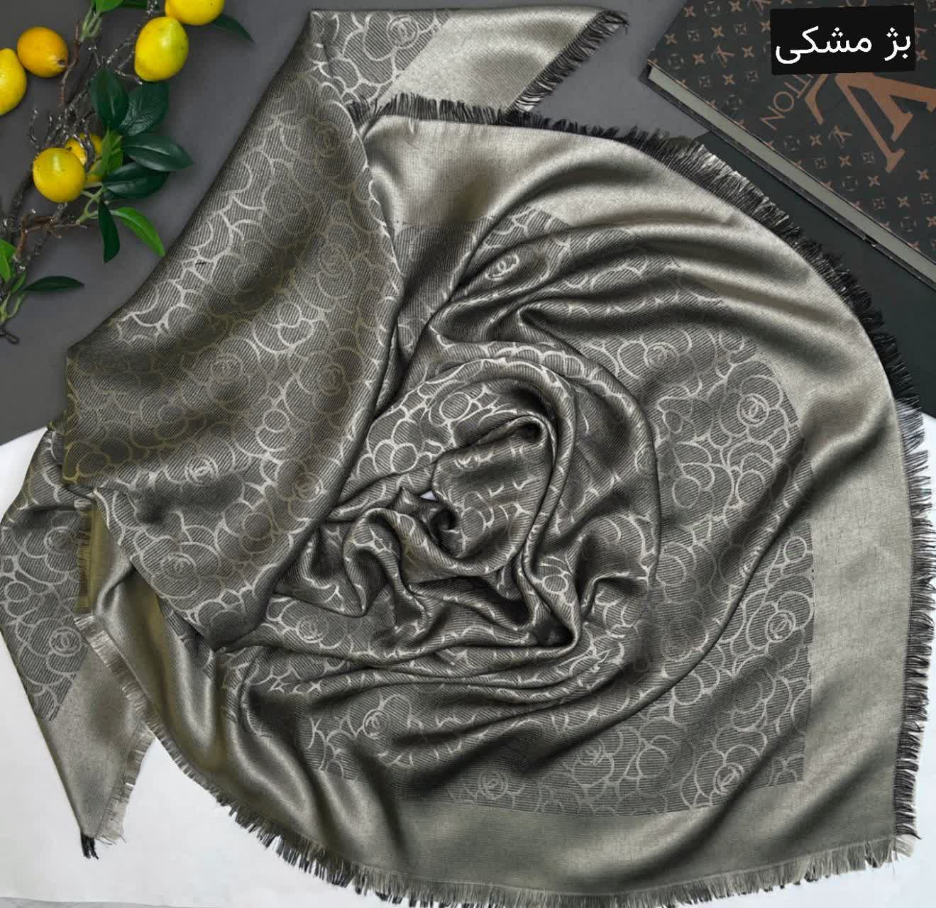 روسری نخ ابریشم ژاکارد طرح شانل لمهدار ۱۴۰ دورریشه