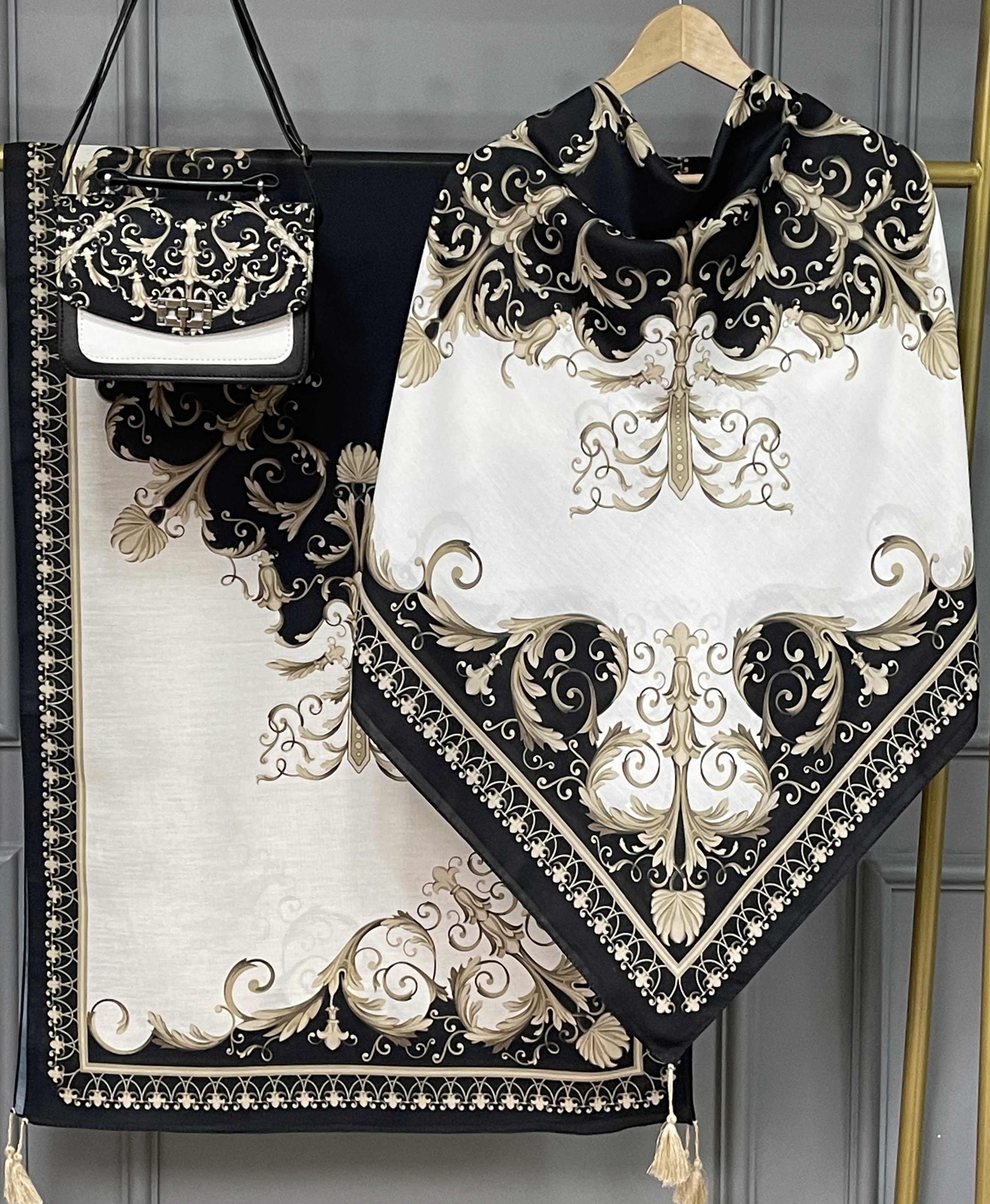 ست کیف، روسری و شال نخ اسپان طرح ورساچه تیبا